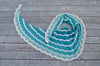 Vinga has a shallow crescent shape, the pattern is both charted and written. The shawl is suitable for a first lace project. All you need to know it knit, purl, yarn over, k2tog and ssk.