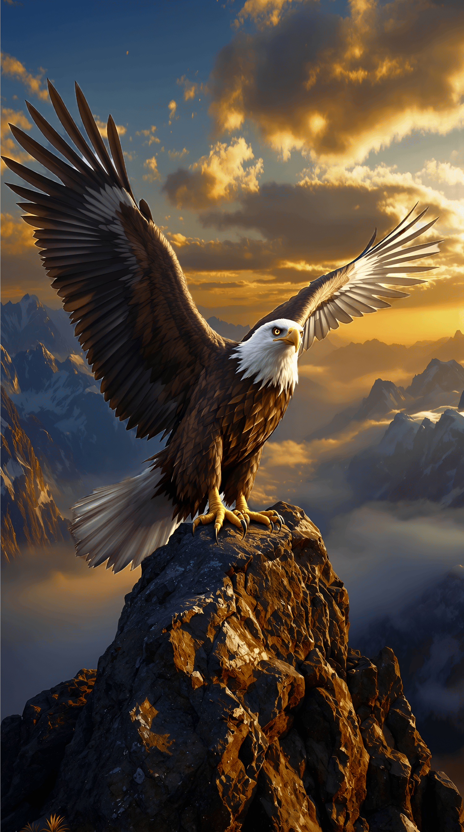 🦅🔥 High above the world, the king of the skies dominates the mountain peaks! With piercing eyes and powerful wings, this majestic eagle spreads its feathers, ready to take flight and conquer the heavens. Every beat of its wings commands the wind, every glare is a challenge to those who dare stand in its way. Witness the symbol of power, freedom, and unstoppable force—soar into the skies and embrace the wild spirit within! 🌄⚡