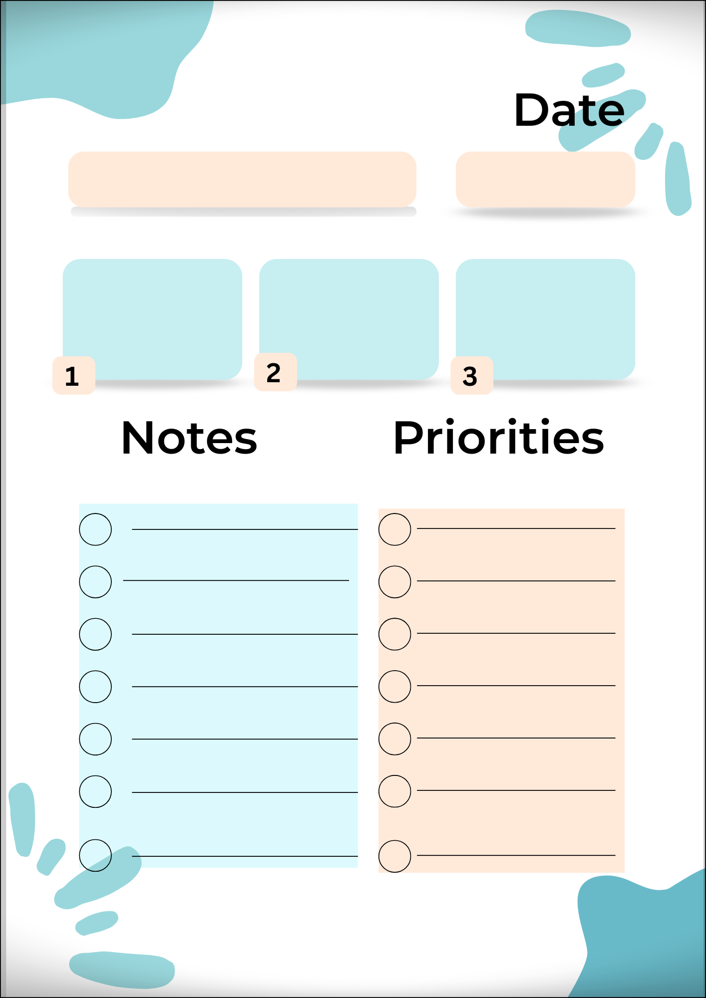 - An aesthetic and modern planner template to organize your day, jot down notes, and track your priorities. Perfect for lifestyle and self-care routines.