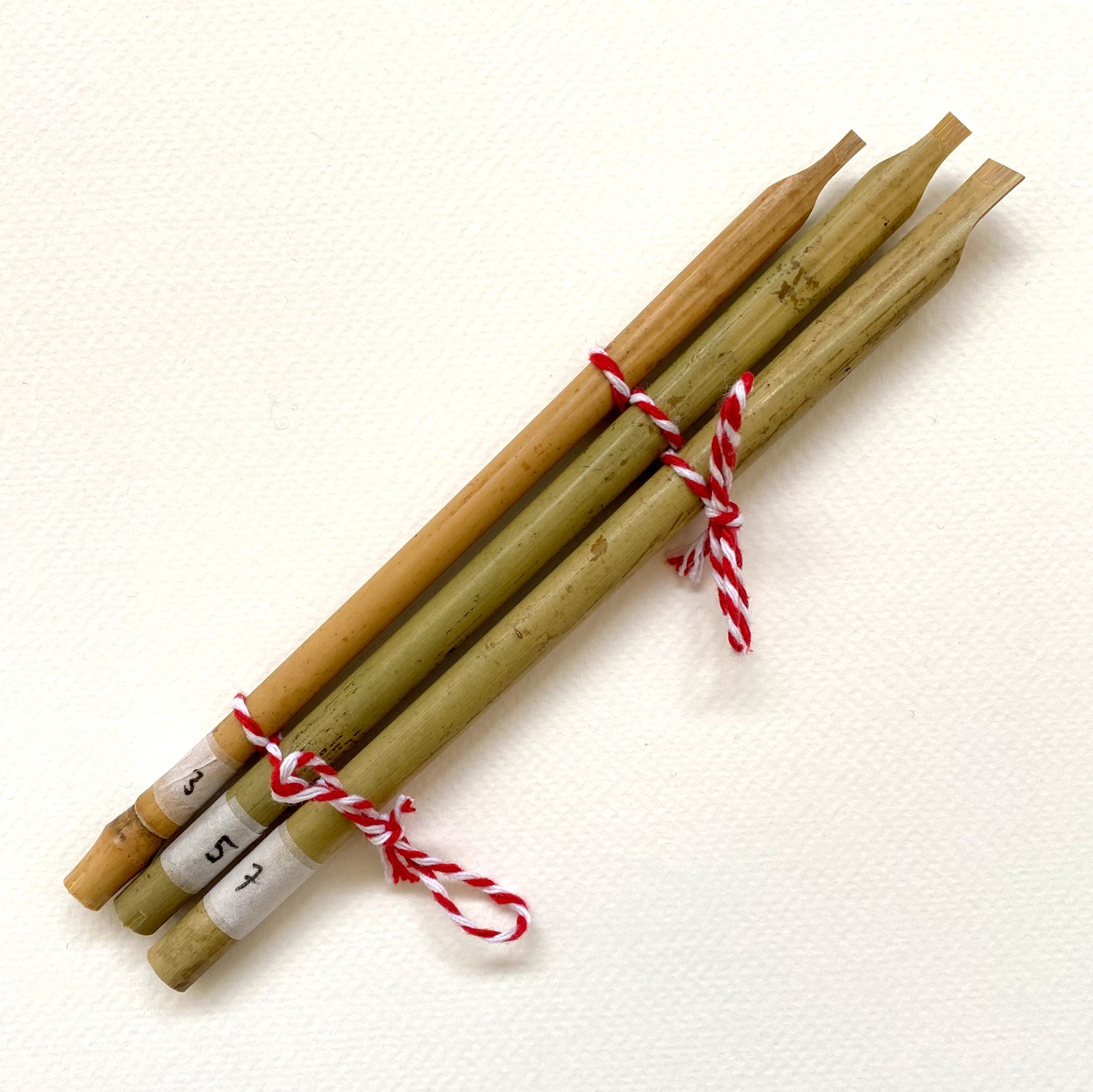 The pens are cut in bamboo to a very thin nib to allow sharp corners and fine details. I make each pen myself and test each one for line quality. The pen number indicates the nib size in millimeters.