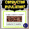 What is an insulator? What is a conductor? Students will know what conductors and insulators are by reading the definition for each. After students review the definitions they will get to look at REAL pictures of world items and decide if they are conductors or insulators. Get students thinking!