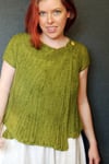 A drapey, loose gauge fabric and a drop-stitch pattern make Lopes very airy — a lightweight cardigan for spring and summer nights, or a sheer skirt which could be worn as a beach coverup, layered over another light-weight skirt or petticoat, or over opaque leggings or thick tights in cooler weather.