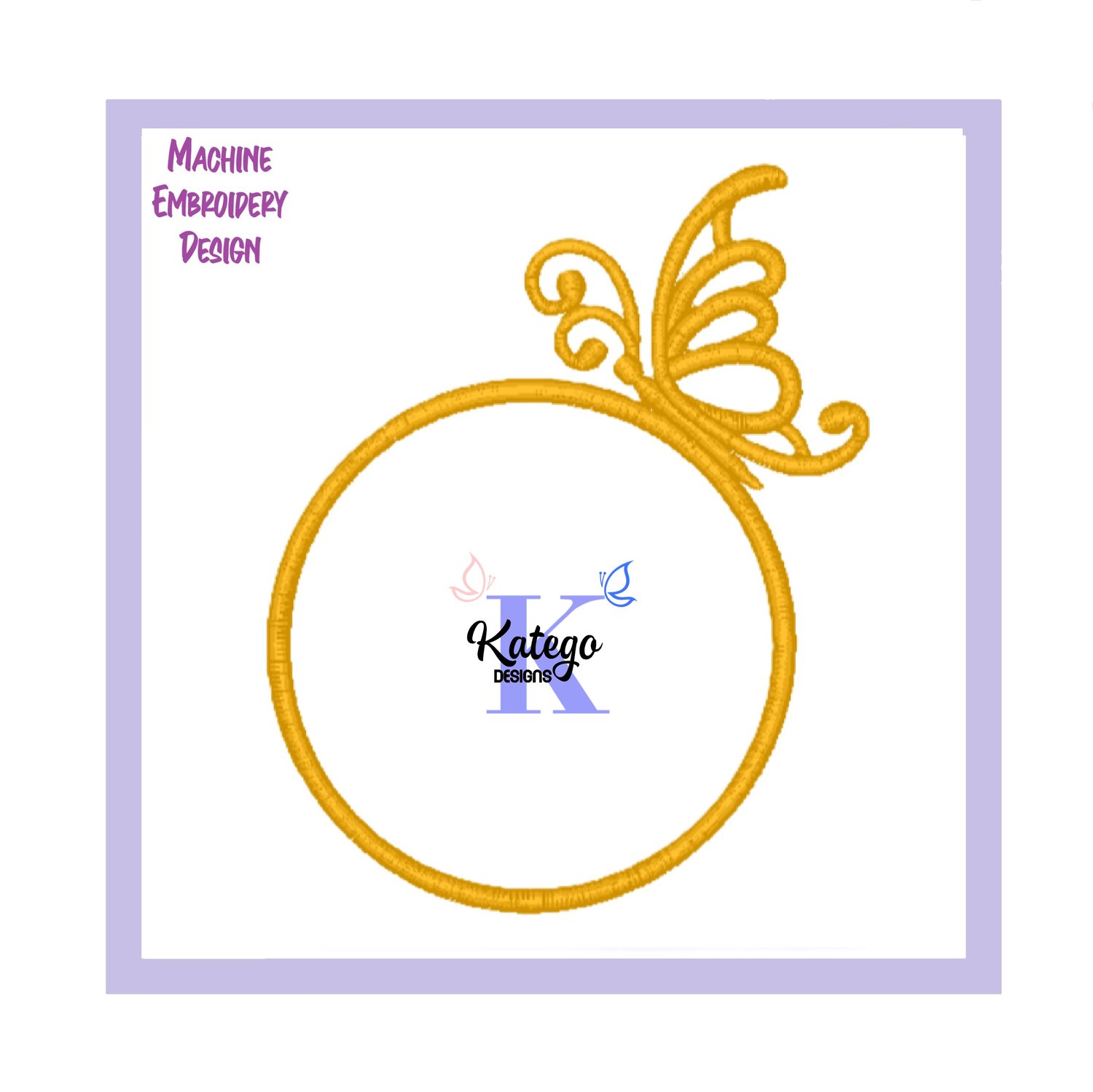 Butterfly Monogram Frame Satin Embroidery Design for Embroidery Machine PES Design