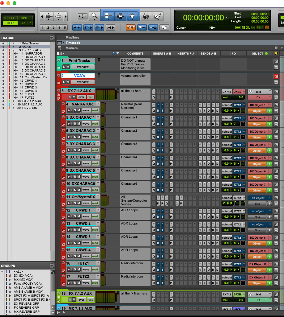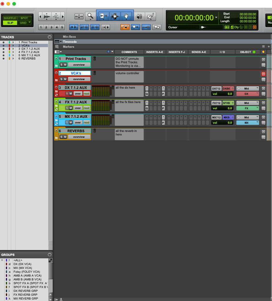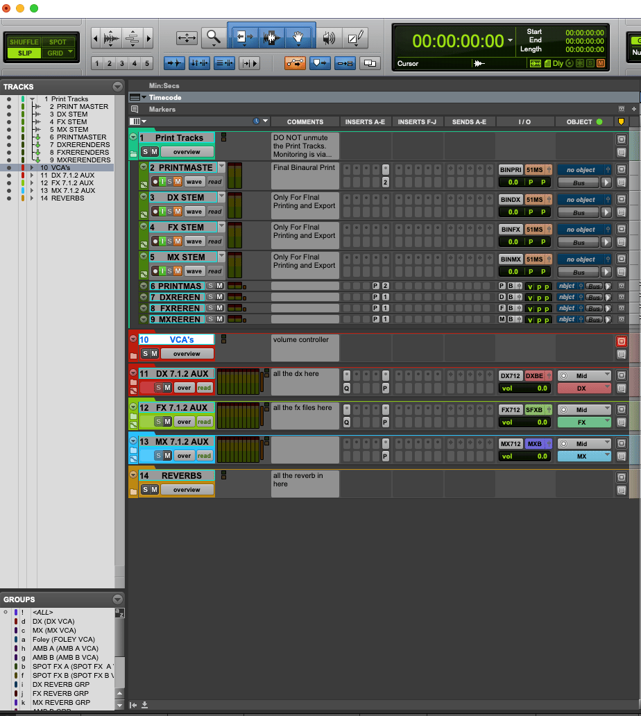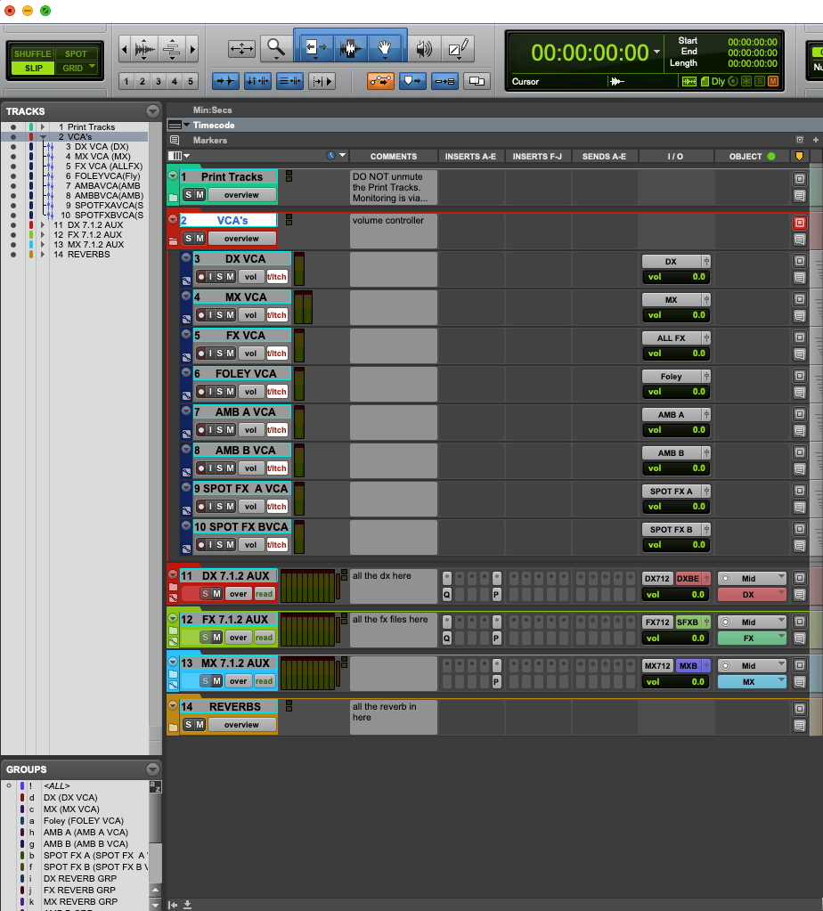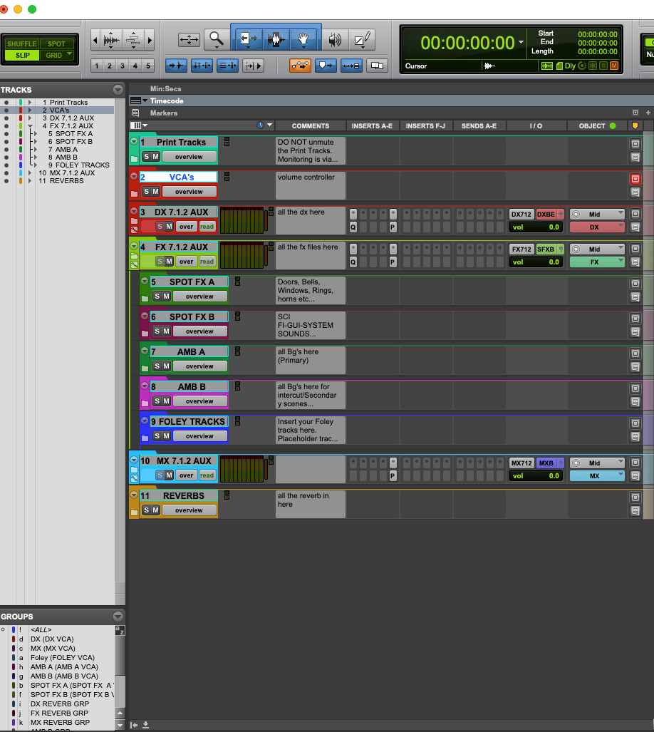 - Organized track layout (DX, FX, BG, Foley, MX)