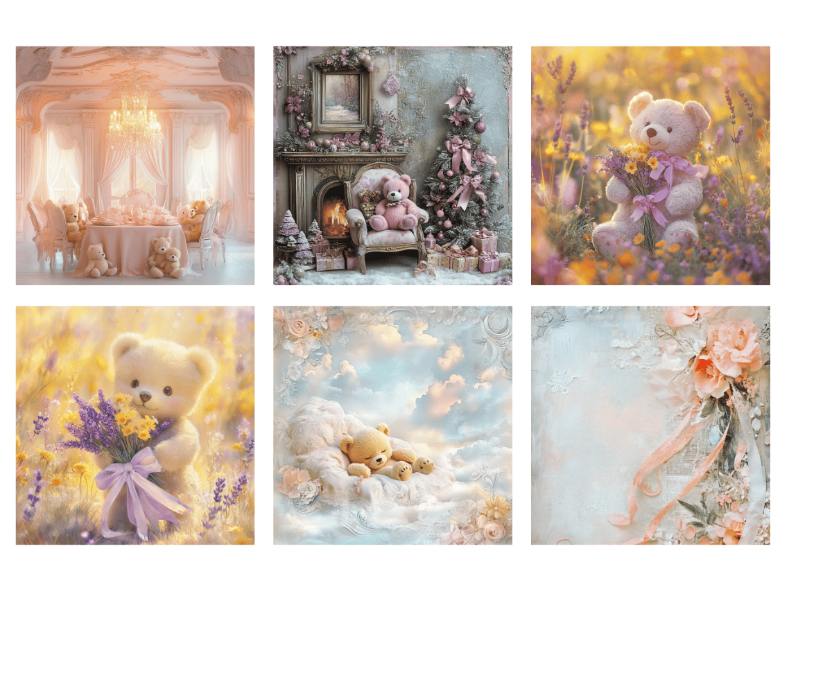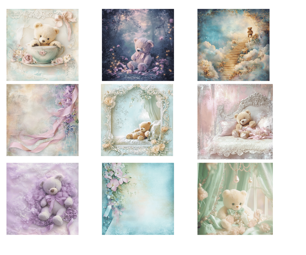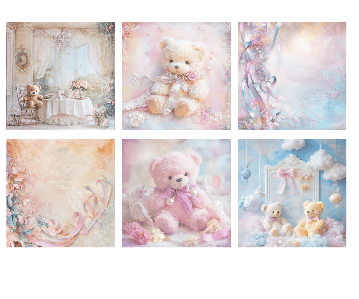 Elevate your crafting projects with our gorgeous Pastel Teddy Bears Digital Papers. Perfect for instant download and sublimation design. Backgrounds include elegantly styled elements suitable for crafting projects in gorgeous tones. Sweet pastels featuring teddy bears sleeping, eating, snuggling and more. Ideal for digital art, printable clipart, and crafting, this set is a must-have for creating charming arts and crafts designs. In fact, cut them out and place them on your planners to make for an extra special gift for an organizer.
