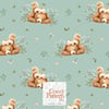 Illustrated in a refined watercolor style, this design brings a peaceful and cozy forest atmosphere, perfect for baby fabrics, nursery textiles and handmade children’s creations. The tender scene and natural elements create a calming and timeless look.