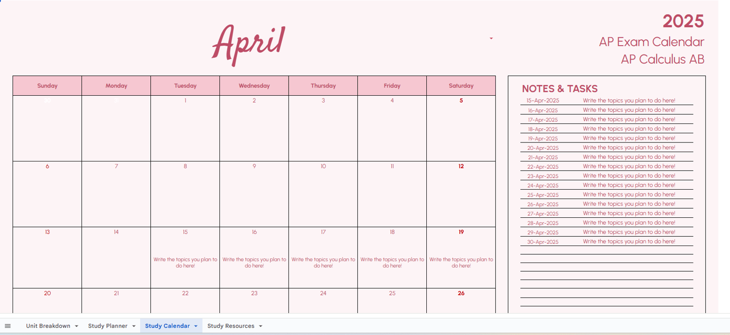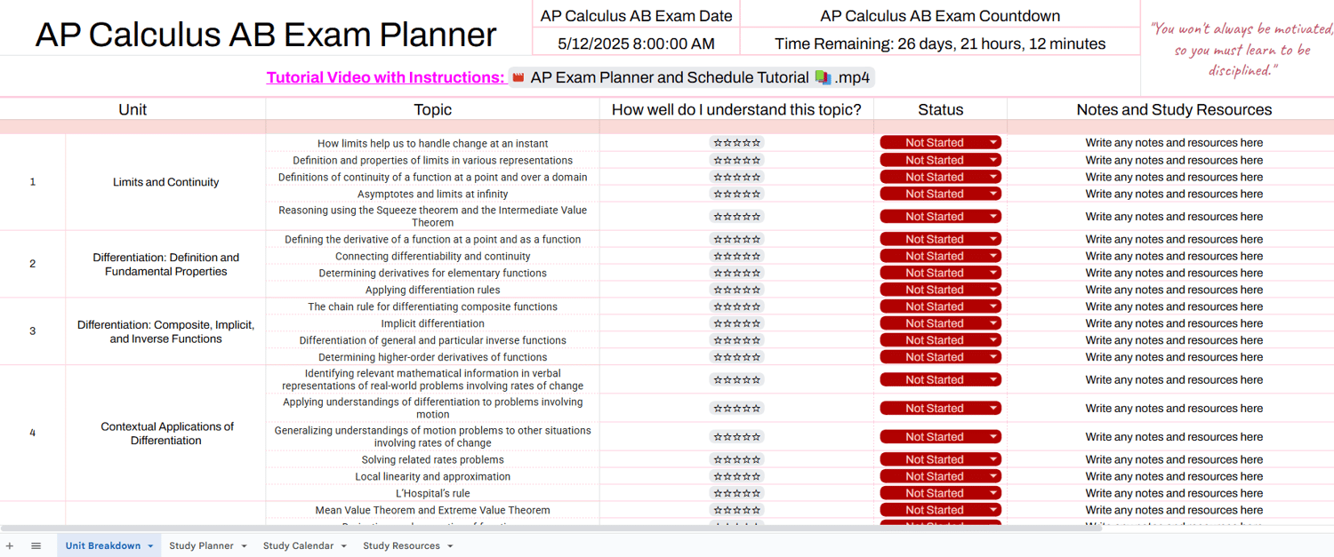 ➗ AP Calculus AB Exam Study Planner & Schedule