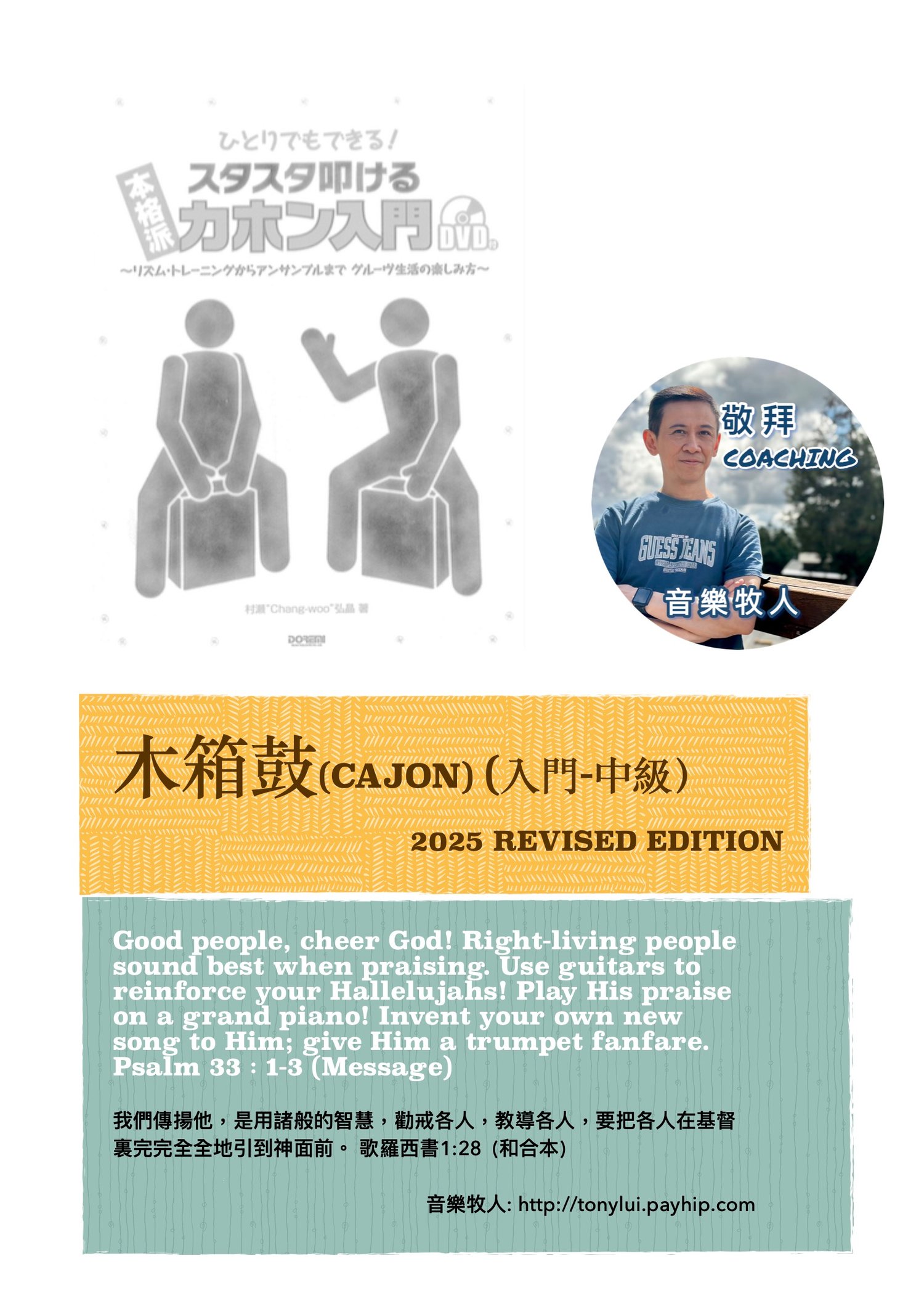 NEW! 木箱鼓(Cajon) 自學 (入門至中級課程) 筆記+練習曲