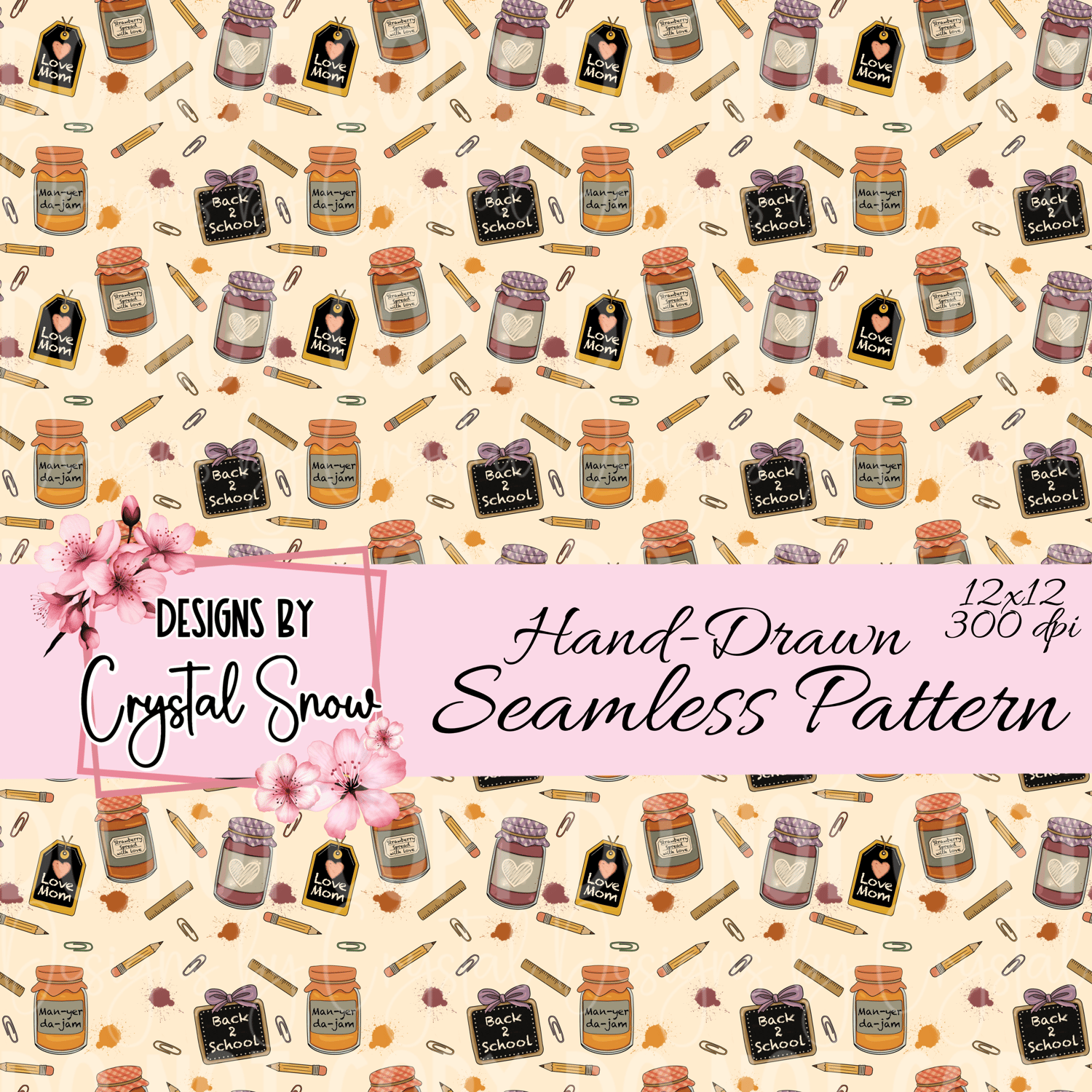 Back 2 School Jam Seamless Pattern – Cute Jars, Pencils & Paint Splats | Digital Download for Crafts, Sublimation & Fabric