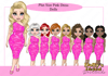 Instant digital download of our Plus Size Pink Dress Dolly Character Bundle PNG (99 PNG’s)