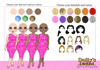 three different skin tones, three eye colours and 12 hair colours in 7 hairstyles)