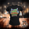 The image is adhered to the front and back of a 100% cotton,7/8" rib collar unisex T-shirt.
