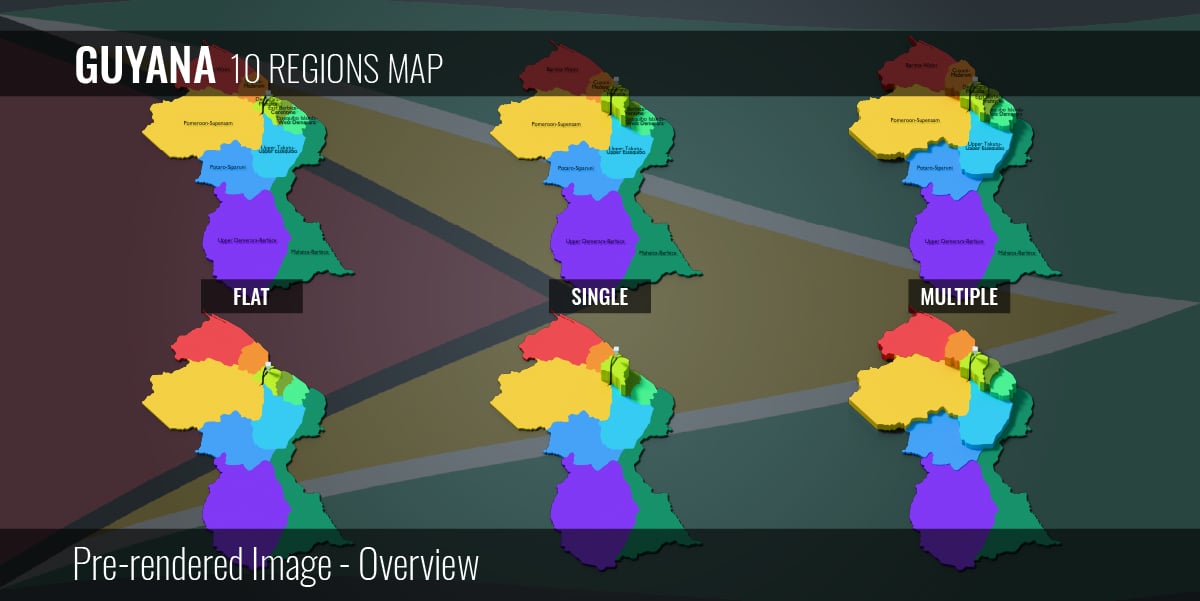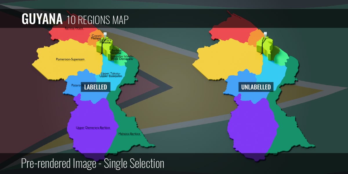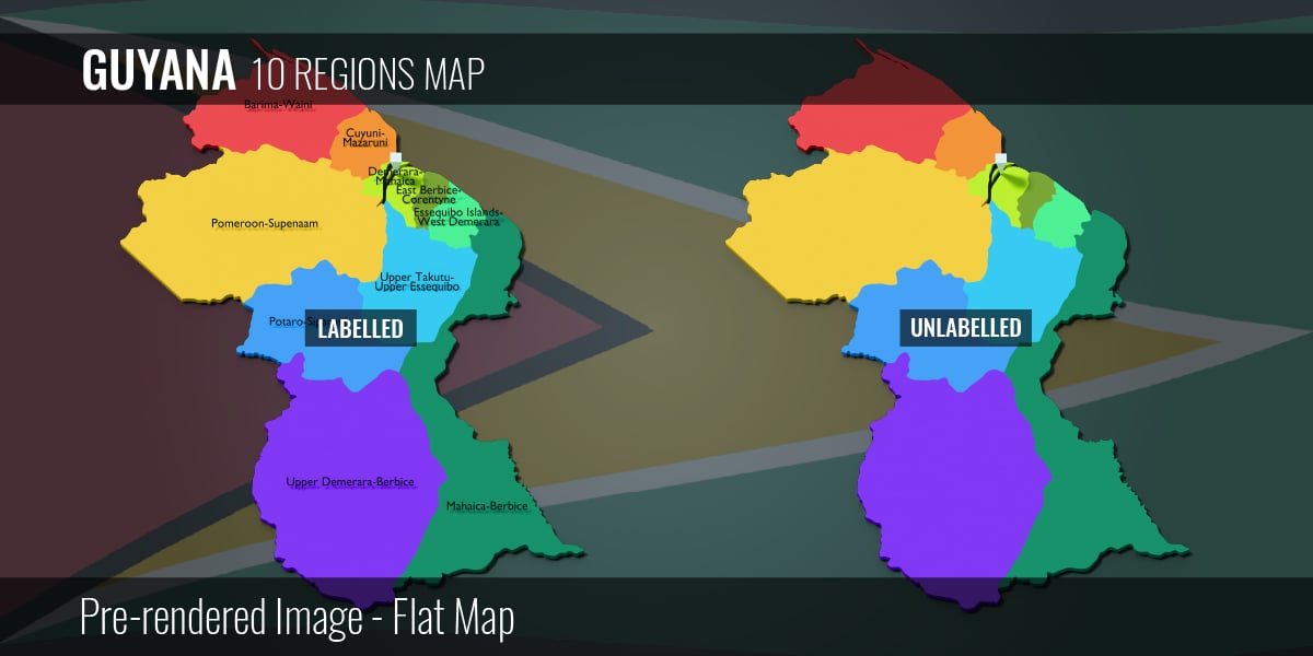 Guyana - 10 Regions Map (3D + Pre-rendered Images)