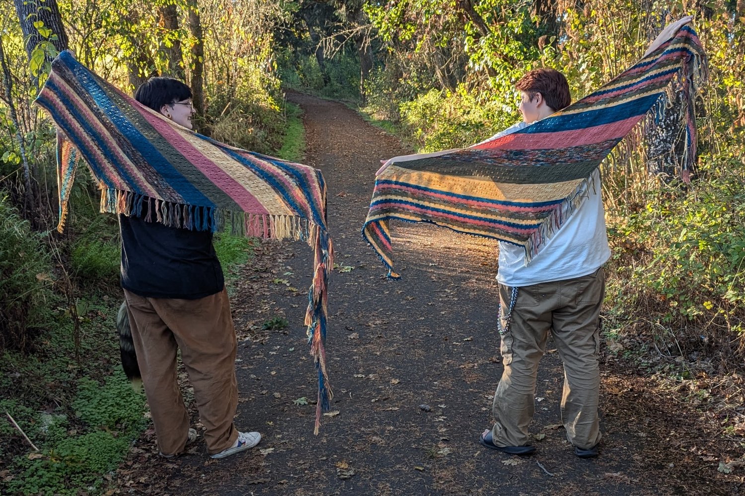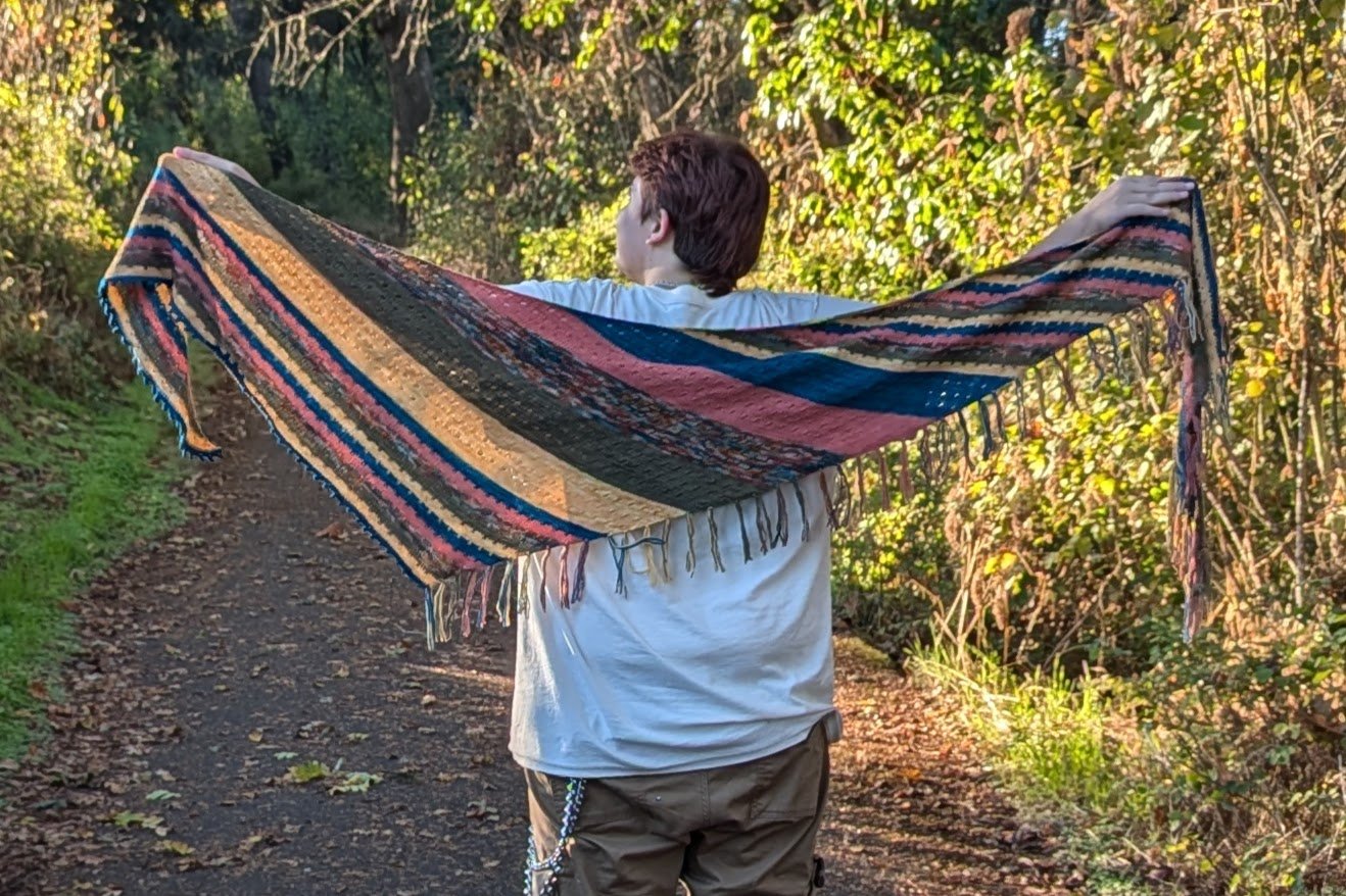 The inspiration for the They/Them Shawl came when I learned about an instance of everyday bigotry. When someone told a friend, who is non-binary, that they should not wear a shawl because shawls are a woman’s accessory, those few small-minded words hurt.