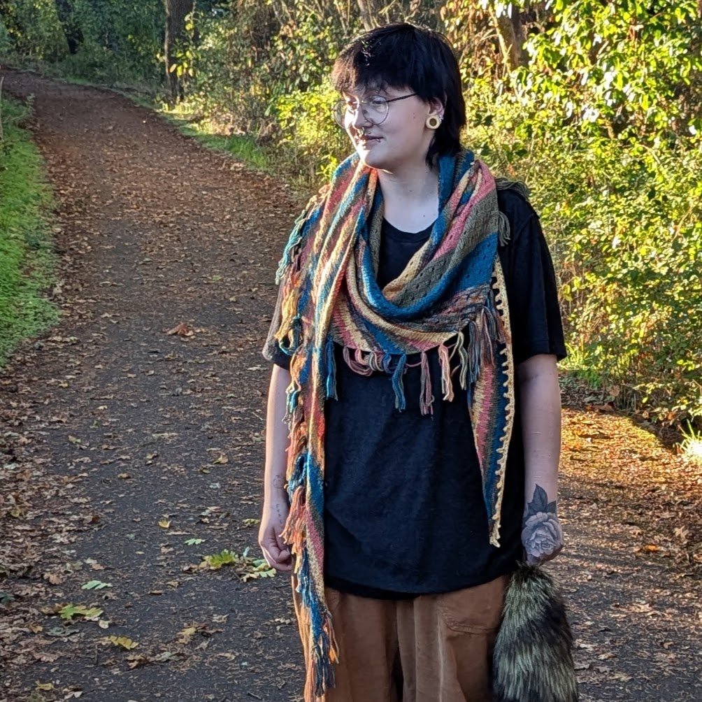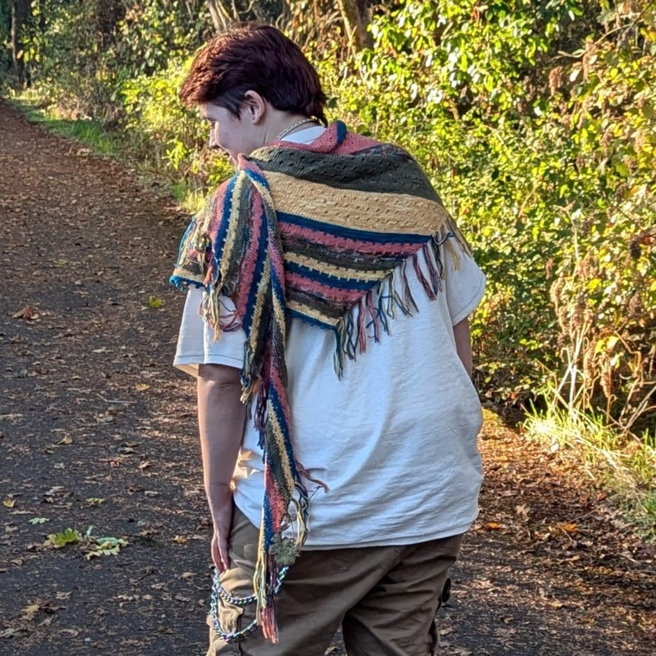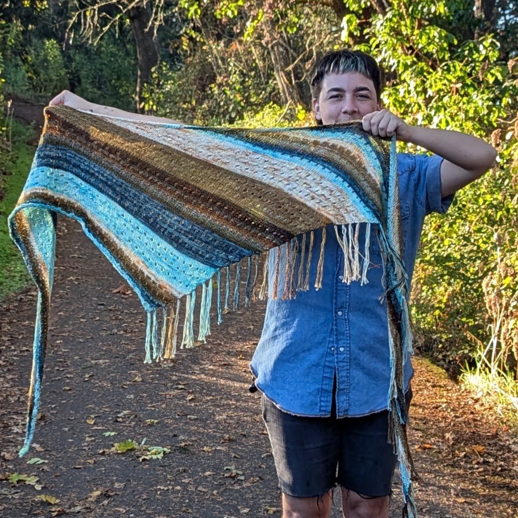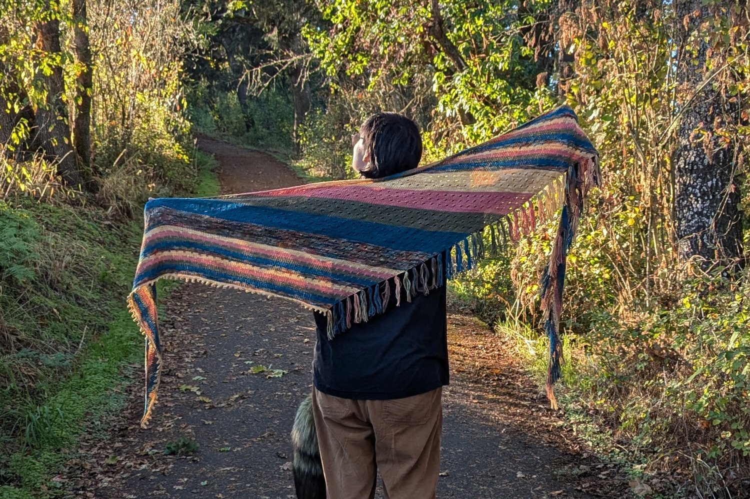 As a response, this pattern loudly proclaims that each person has the right to their own unique gender expression; to be recognized, and to be respected. The They/Them shawl is for everyone of any pronoun or gender expression, and invites you to live as yourself fully and without shame, with whatever clothing, accessories, and pronouns feel right for you.
