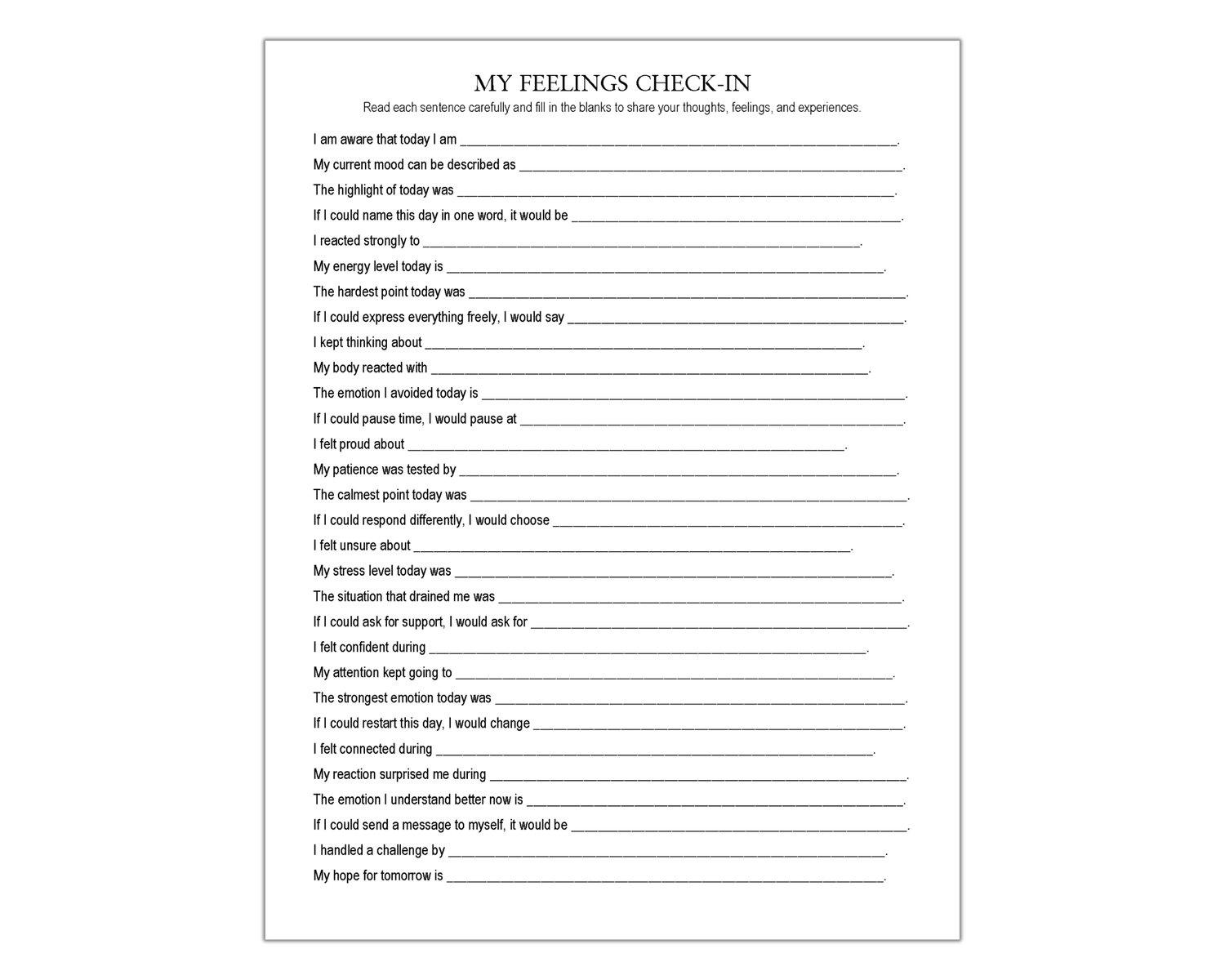 My Feelings Check In Worksheet, Emotional Check In, How I Feel Today, Social Emotional Learning, Stress Management, Self Regulation