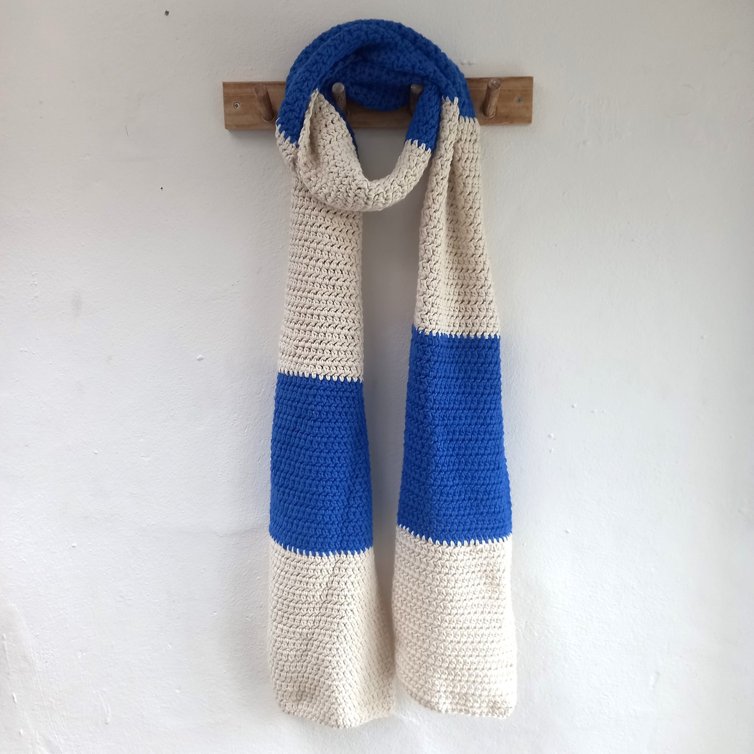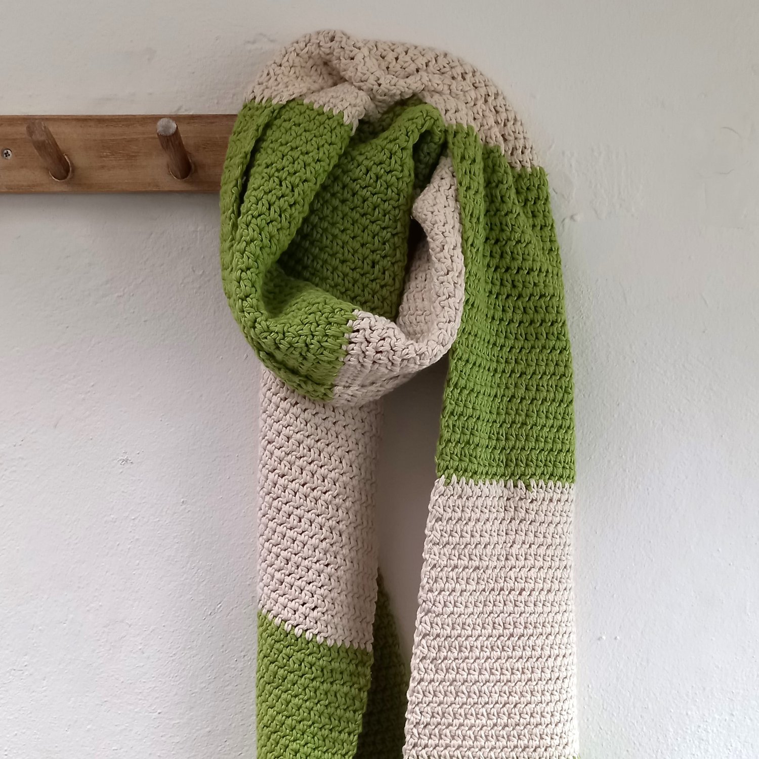 Crochet Pattern - Bluestone Scarf - Cotton Aran - Striped - PDF Download