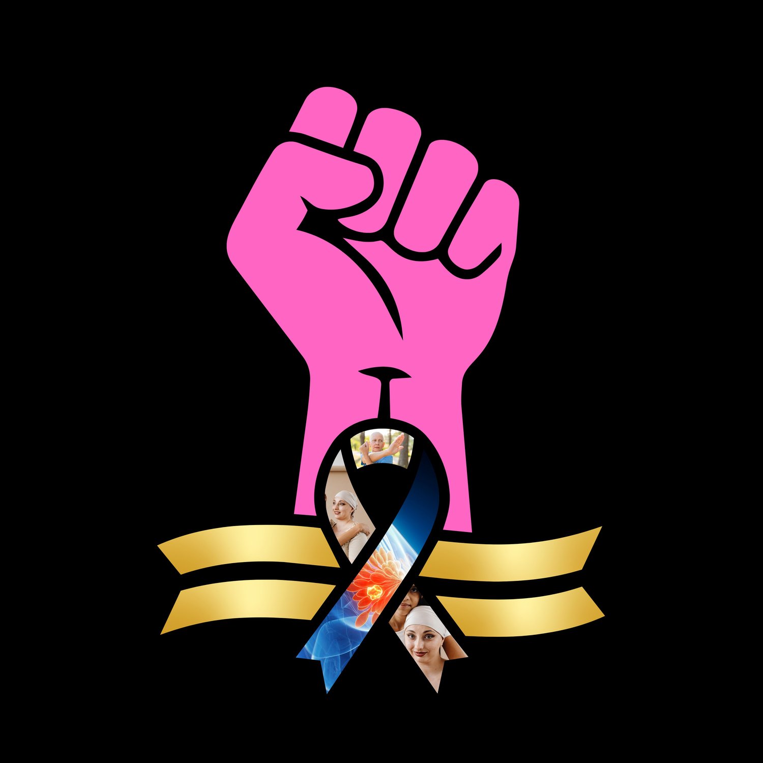 Empowerment Photo Frame Canva Template: Dynamic Fist & Ribbon Layout for Marketing