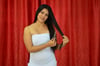Maria loves her hair, and if circumstances had been different, she probably wouldn't have found herself in our chair. But the fates smile on us this day, because today her beautiful hair gets added to floor. She gets a cool transition cut with designs on the sides and back before the entire thing is clipped lathered and shaved bald. Brows get removed too.