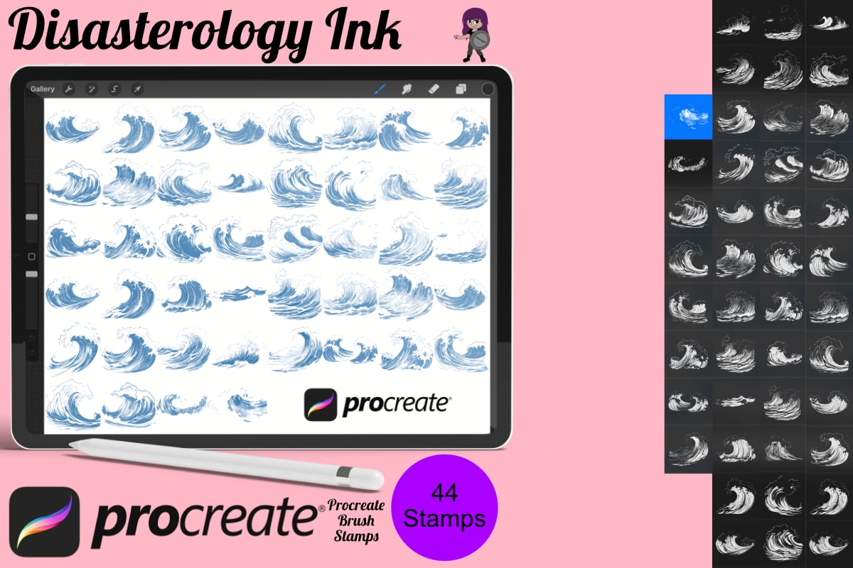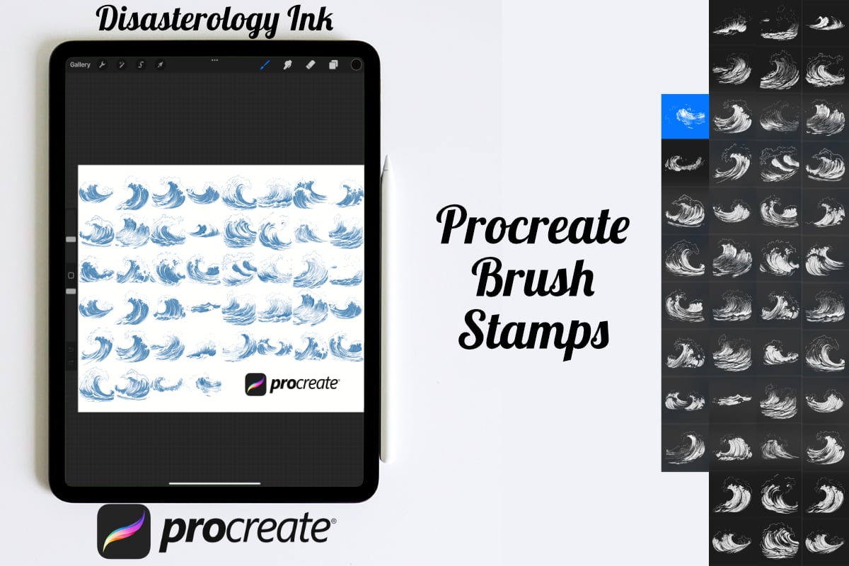 - 44 Ocean Sea Wave stamps for Procreate