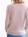 The work begins with the neck ribbing. The neckline is then shaped with short rows. When the raglan increases are completed, sleeve stitches are placed on hold and body is worked in the round towards the hem, adding a slight A-shaping. Sleeve stitches are then placed back on needles and the sleeves are worked in the round towards the cuffs.