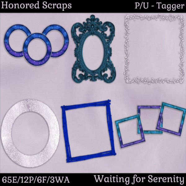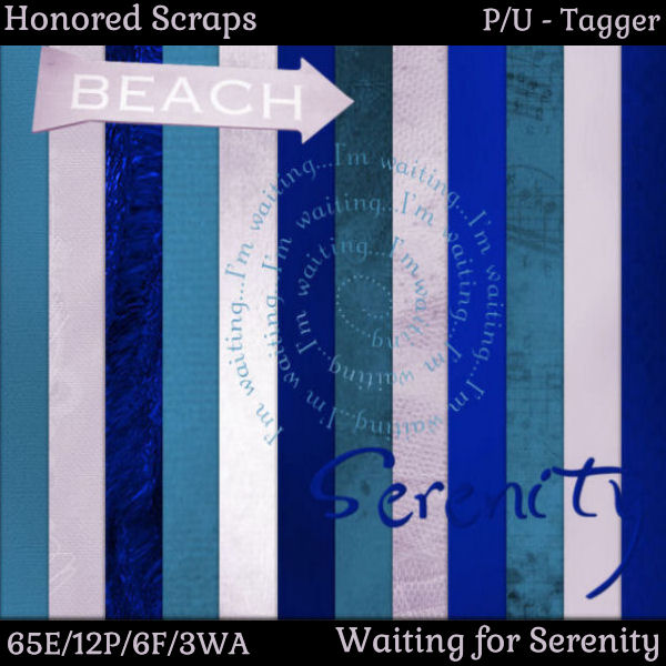 Waiting for Serenity is a tagger kit that consists of 65 elements, 12 papers, 6 frames and 3 word art.