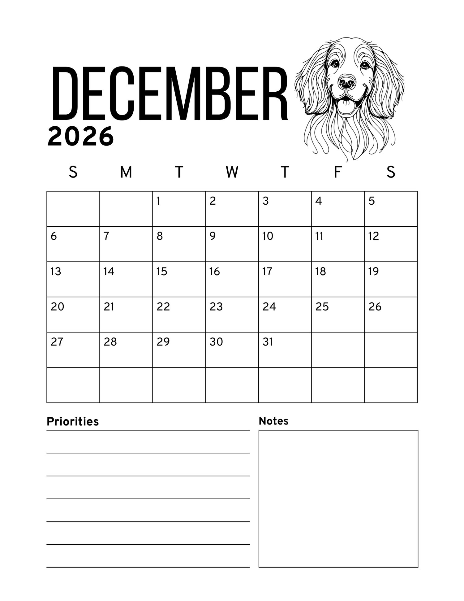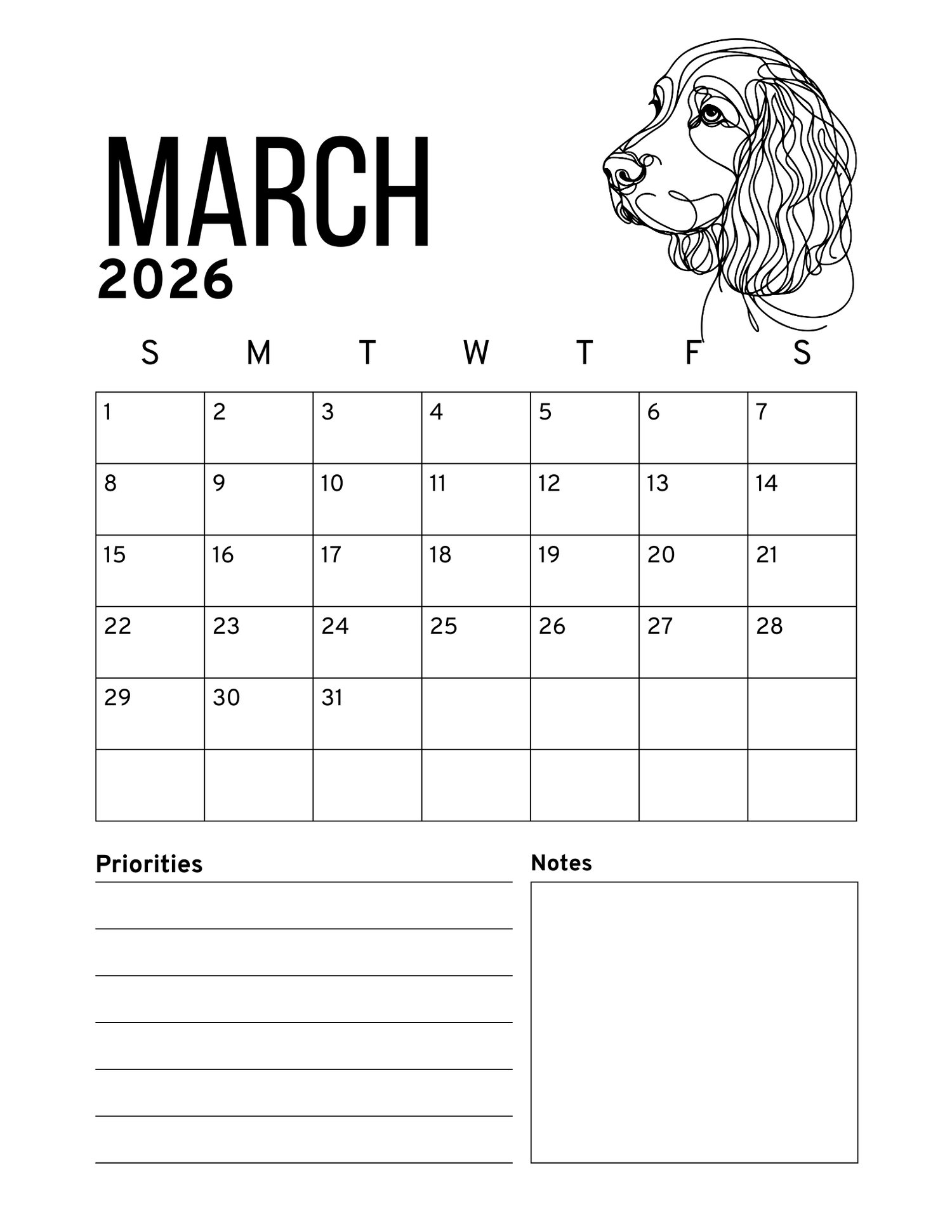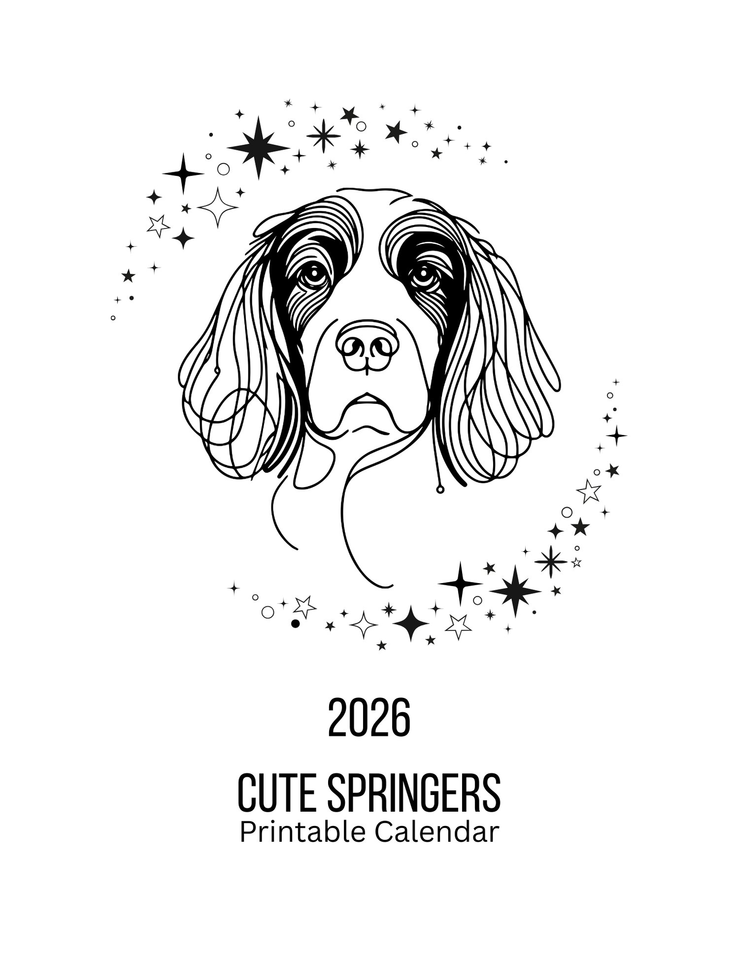 Start the new year with the grace, beauty, and personality of the English Springer Spaniel! This 2026 printable calendar brings the beloved Springer breed to life month after month. Enjoy stunning Springer-themed artwork throughout the year, or gift it to a friend who adores this loyal and elegant breed. Simply download, print, and enjoy a full year of Springer joy.