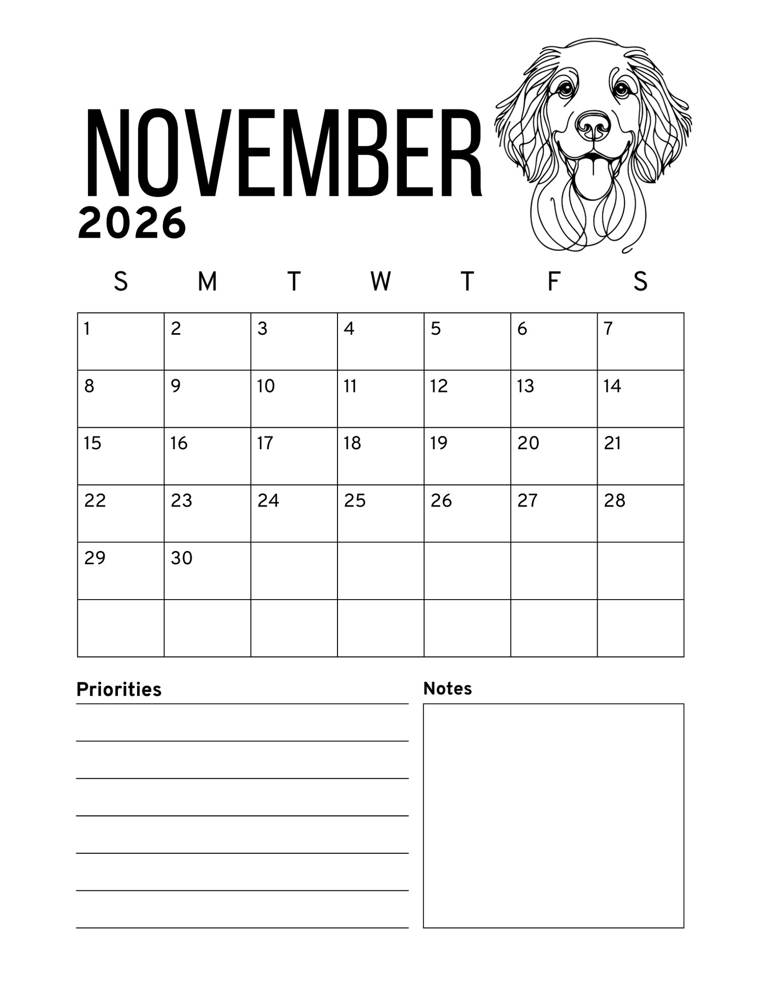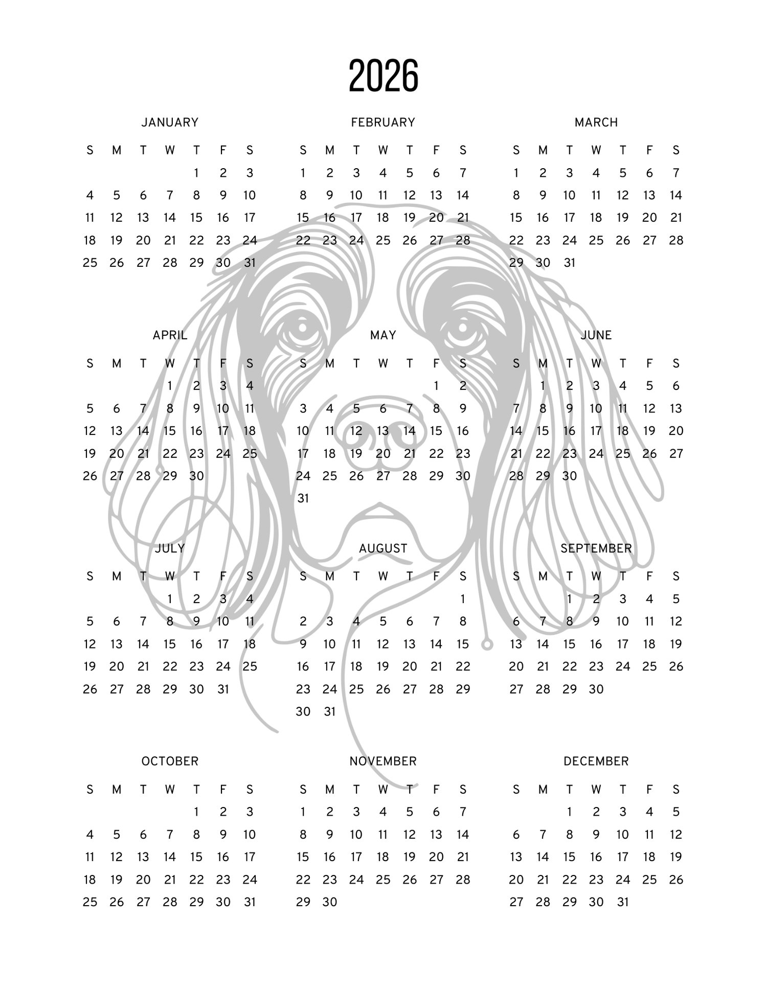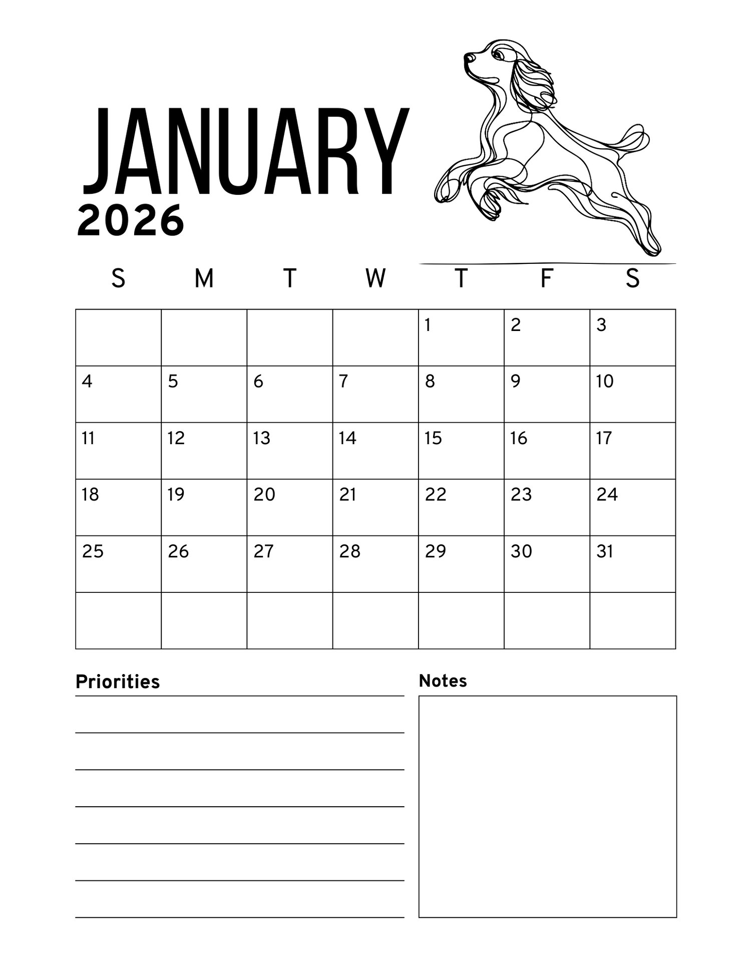Start the new year with the grace, beauty, and personality of the English Springer Spaniel! This 2026 printable calendar brings the beloved Springer breed to life month after month. Enjoy stunning Springer-themed artwork throughout the year, or gift it to a friend who adores this loyal and elegant breed. Simply download, print, and enjoy a full year of Springer joy.
