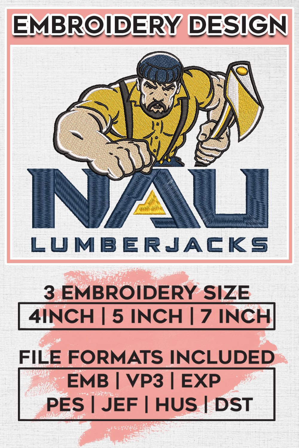 NAU Lumberjacks College Football Team Mascot Logo Embroidery Designs, NCAA Northern Arizona Lumberjacks Machine Embroidery Files, NCAA Logo embroidery designs, NCAA Northern Arizona Logo, Digital Download