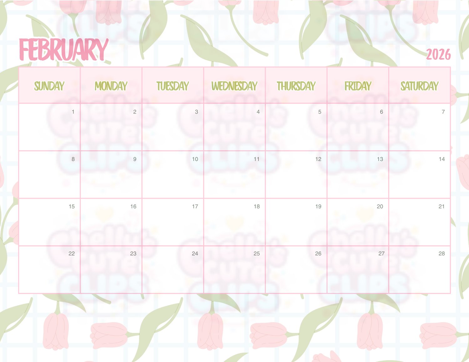 Designed in a soft pink + white color palette with elegant tulip florals, this calendar brings calm, feminine, cozy vibes to any space. Print it at home or use it digitally!