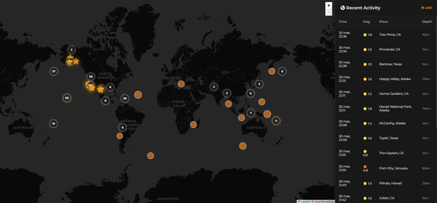 - Real-Time Updates: The map and data feeds update live as the government API pushes new seismic events.