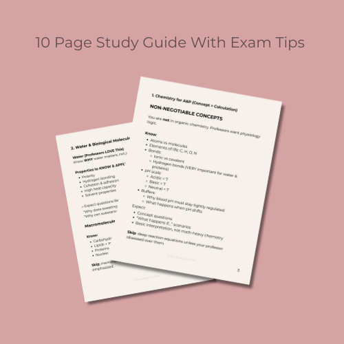 A focused review sheet that organizes the key concepts I prioritized when preparing for Exam 2 in Anatomy & Physiology I, covering cells, tissues, and the integumentary system. This guide helps you cut through the overload and focus on exam-relevant material.