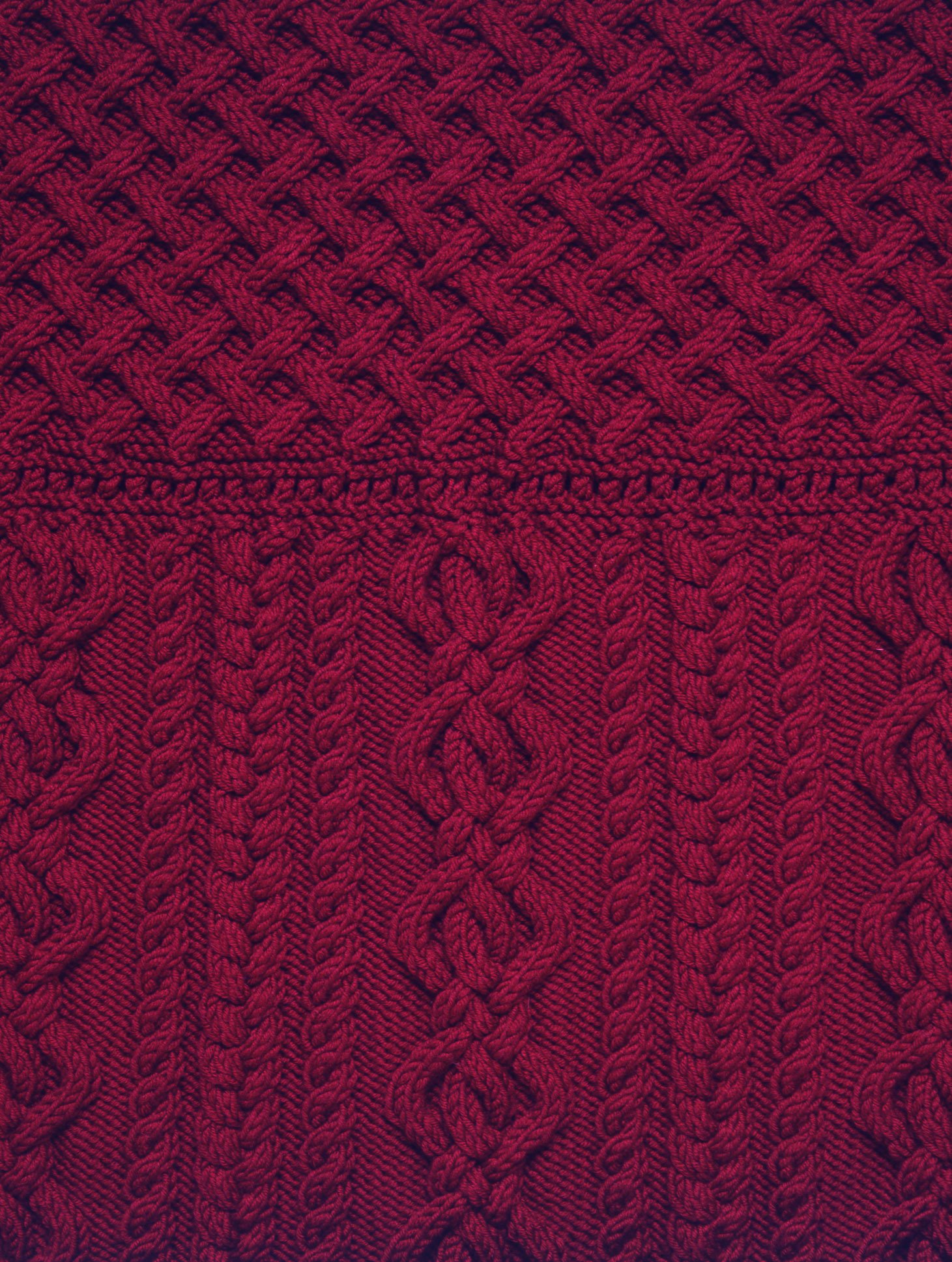 Skills Used: Cable knitting, knitting in the round, reading charts, increasing and decreasing, picking up stitches