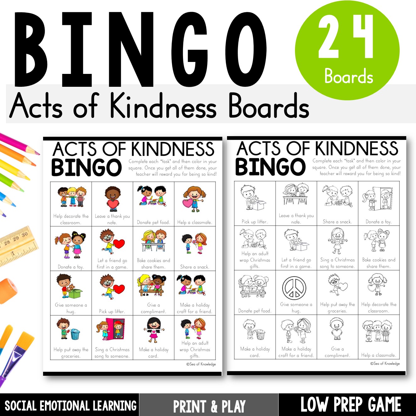 Make kindness part of your holiday season with this engaging Kindness Bingo Challenge! Perfect for promoting social-emotional learning, this printable activity includes 20 unique bingo sheets filled with fun, festive kindness challenges for kids to complete.