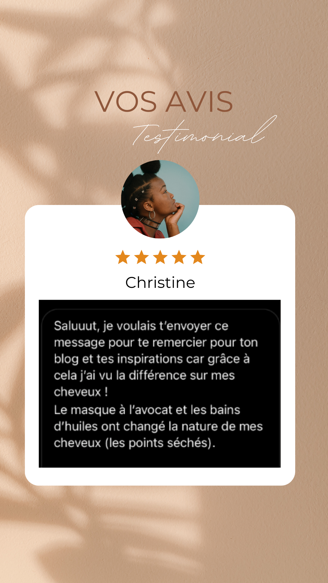 Que tu veuilles les fortifier ou booster la pousse, ces recettes sont là pour t'aider. Que tu sois novice ou experte, cet ebook t'accompagnera dans ta routine capillaire.