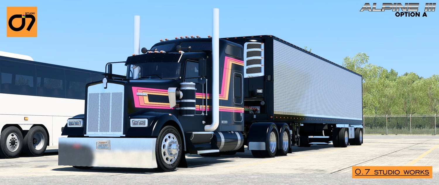 Choose Your Look. Define Your Journey. Whether you’re a fan of retro charm or sleek modern lines, the Alpine Skin Mod offers a full spectrum of designs to transform your truck. Load up, roll out, and let the Alpine legacy carry you down every highway in style. Happy trucking from all of us at O.7 Studio!