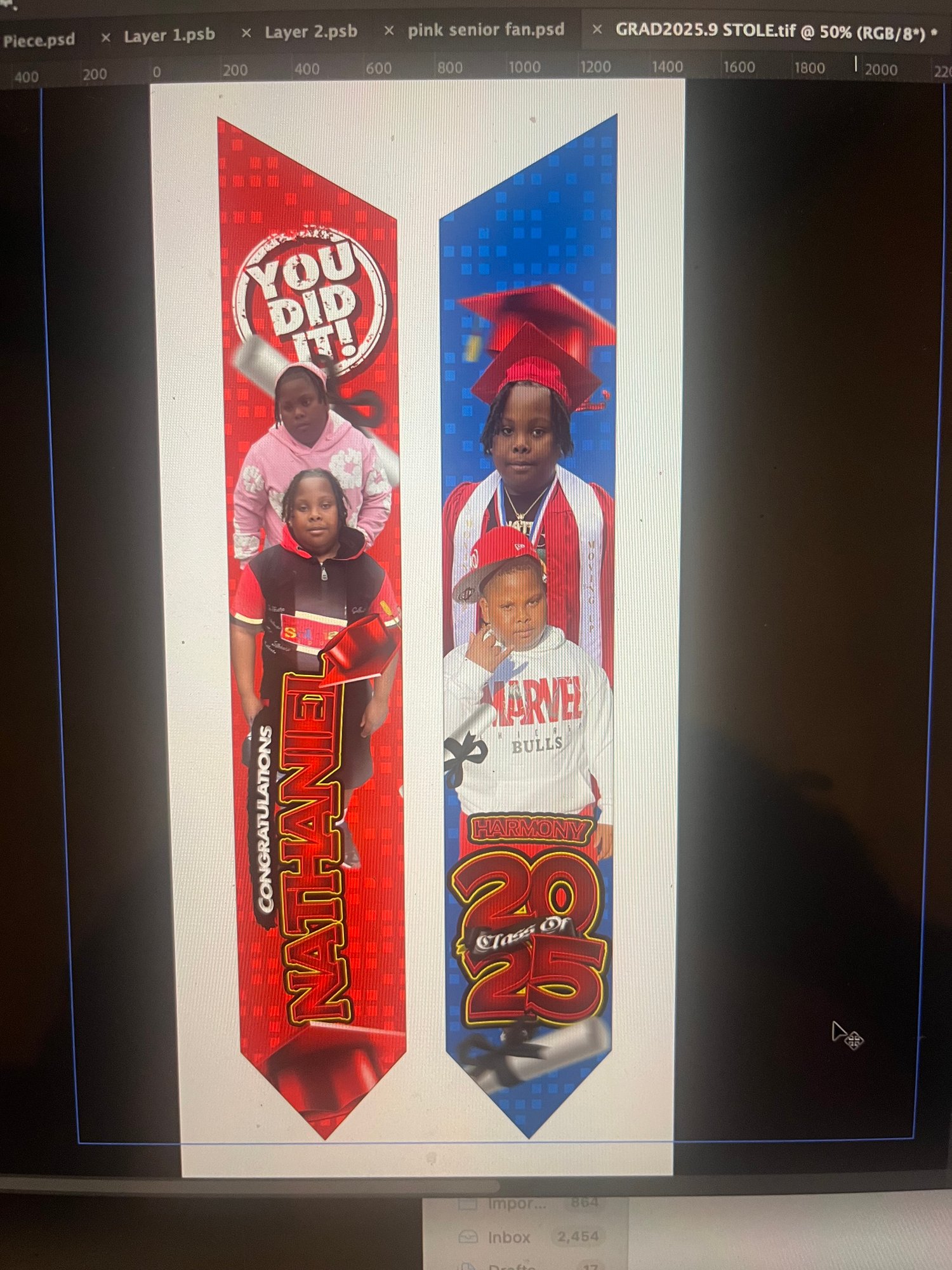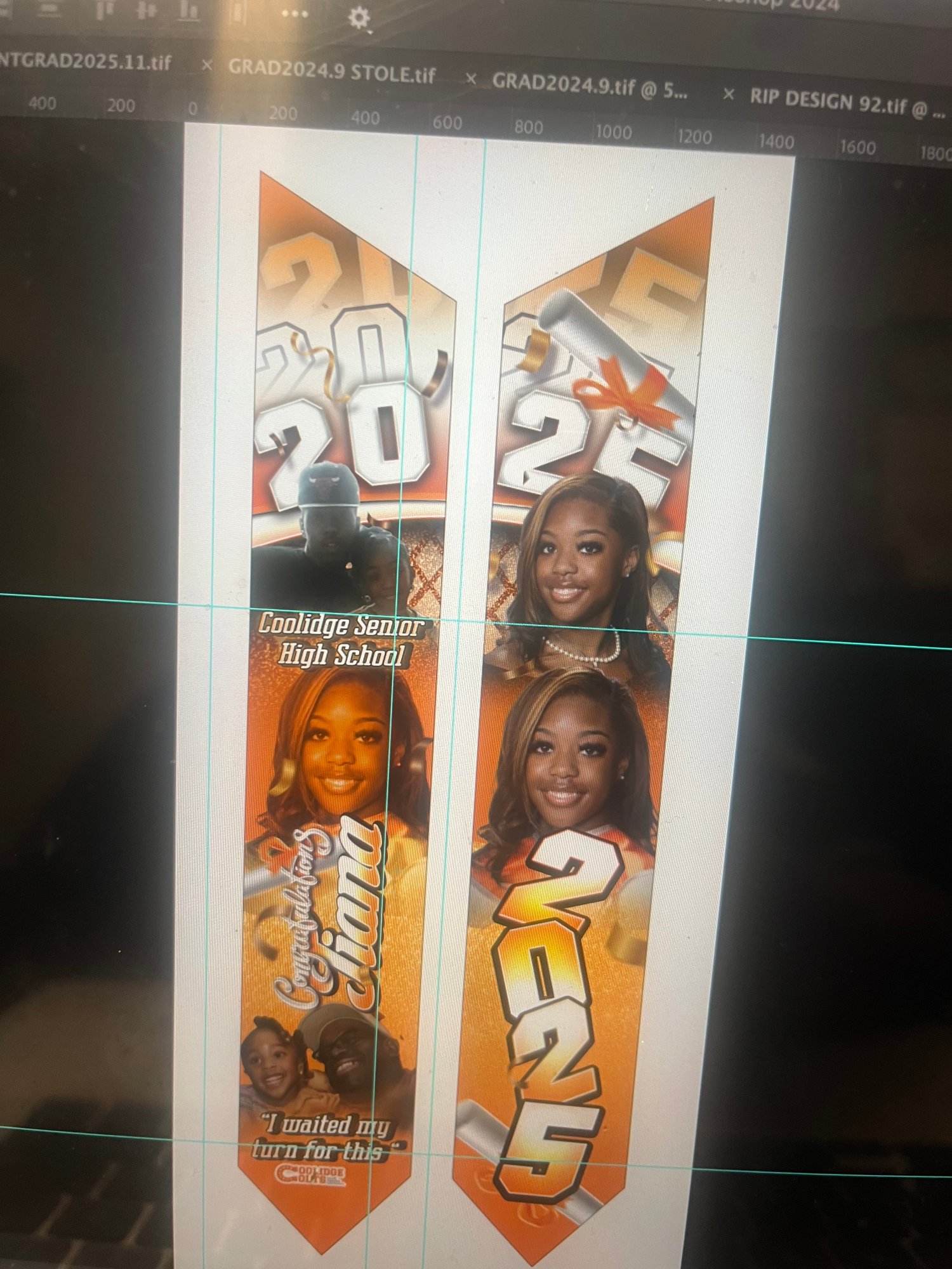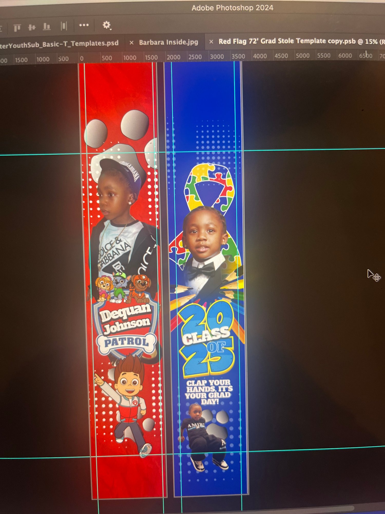 Please be mindful of the pictures you are using and the resolution. Dark pictures will not show clearly on the stoles. Please make sure to send clear high resolution pictures for better quality. This is a FYI.