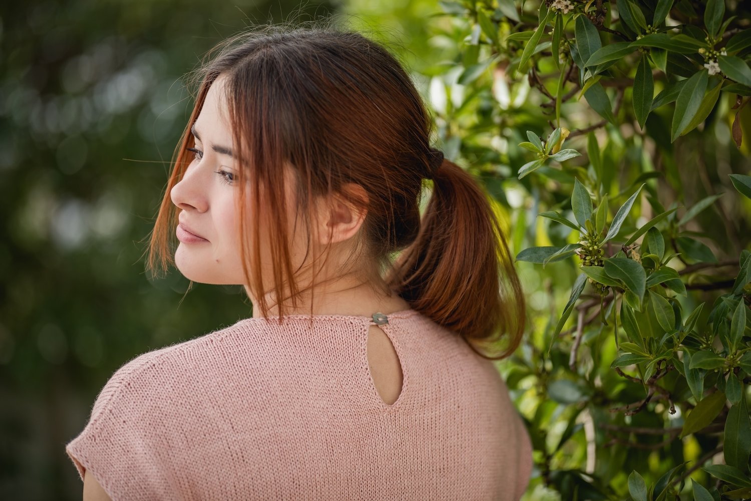 In this masterclass, we will knit the Penelope T-shirt. This T-shirt is knitted from the bottom up, in two parts, front and back, which are sewn together at the end. We start by knitting the lace hem, then in stockinette stitch with increases to form the armhole. At the front, we separate at the neckline, form the shoulders with shortened rows, and leave the stitches on hold. At the back, we divide the work to form a teardrop opening where we will sew a button. We also knit the shoulders in shortened rows and then join them to the respective front stitches with a 3-needle bind-off. Finally, we sew the front and back and pick up stitches to finish the collar.