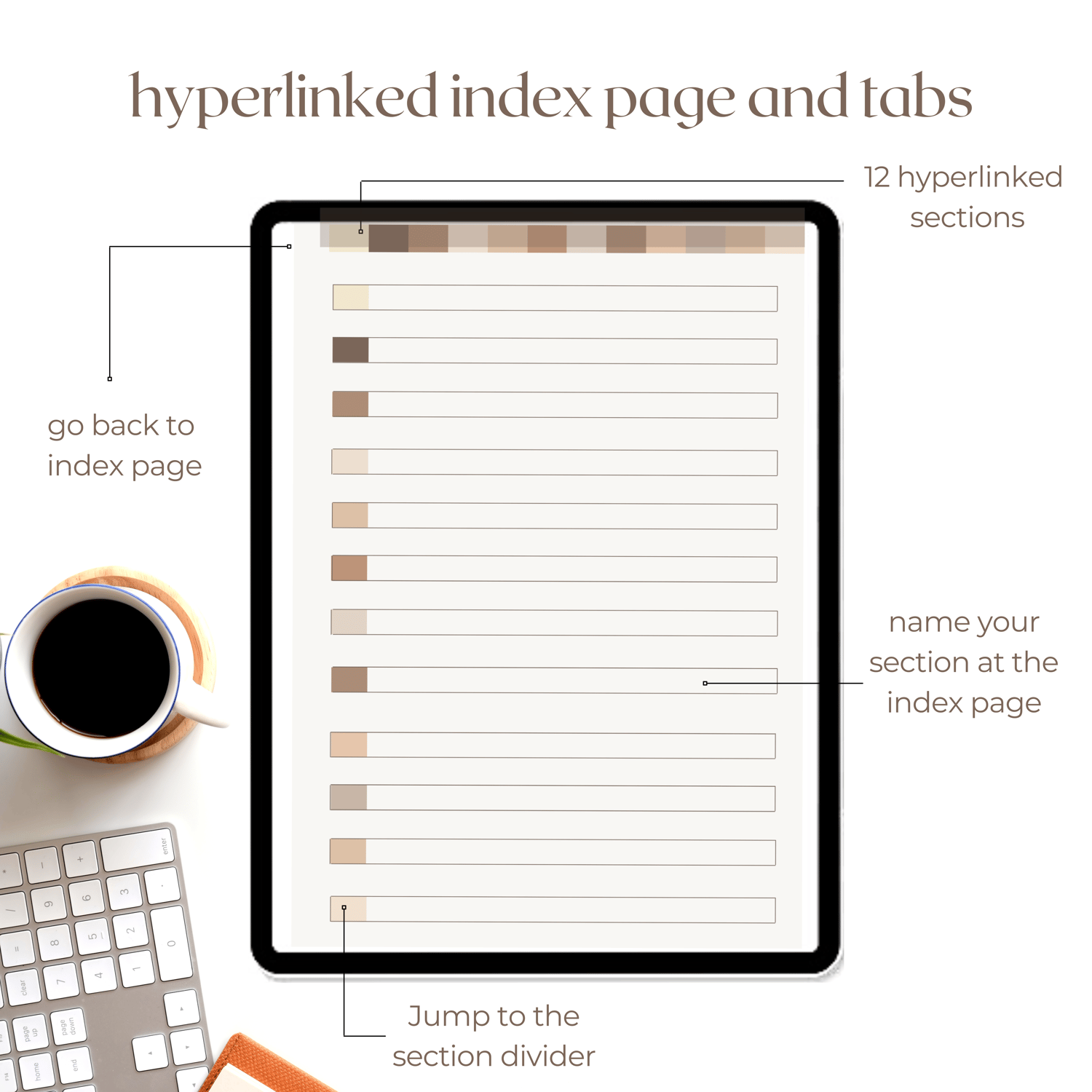 Portrait Digital Notebook, 12 Hyperlinked Tabs
