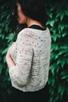 O casaco Douro Cardigan é tricotado de cima para baixo (top-down), é um casaco curto (cropped) com algum rendado e textura.