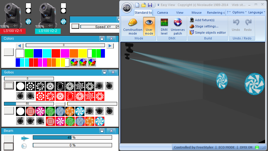 Esta Librería SSL2 está optimizada para trabajar con Magic 3d Easy View. Es decir para ver una representación 3D de las secuencias que estemos realizando con Freestyler, QLC+ o cualquier otro soft que se conecte con Magic 3d.