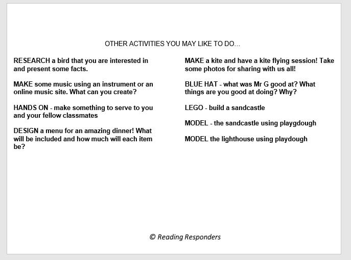 10 Lighthouse Keeper book series - NEW and improved PowerPoint paper saving templates - DRAW, RESEARCH, DESIGN, WRITE and bonus tasks included - 9/10 response files include the book read aloud link to You Tube. Each file is at least 15 slides.