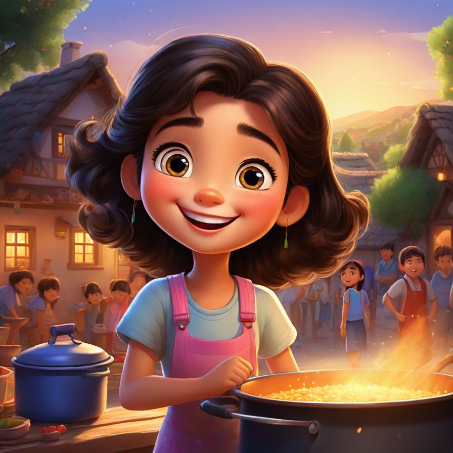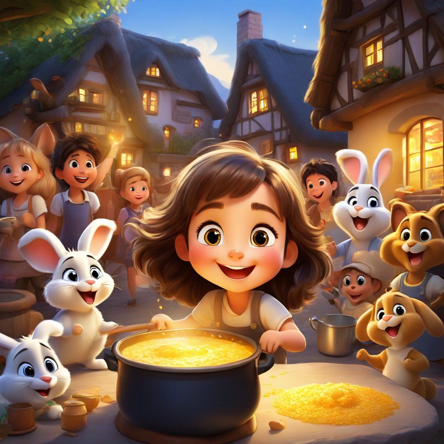 A very special discovery was made in the tiny village of Sparklewood, where the sun shone bright and the trees whispered secrets to each other. Luna Sparkles, a bright and curious 8-year-old girl with curly brown hair and green eyes, was out exploring the forest when she stumbled upon a hidden clearing. In the center of the clearing stood an old, mysterious-looking cookpot with a sign that read: "Magical Porridge Cookpot - Never-Ending Delight!" Luna's eyes widened with wonder as she exclaimed, "Wow! A magical cookpot! I wonder what kind of porridge it makes!" Just then, a wise and witty old man, Professor Pecan, appeared from behind a tree, his long white beard swaying in the breeze. "Ah, Luna, my dear, I see you've discovered the cookpot! I've been searching for it everywhere. It's said to cook the most delicious porridge in all the land!"