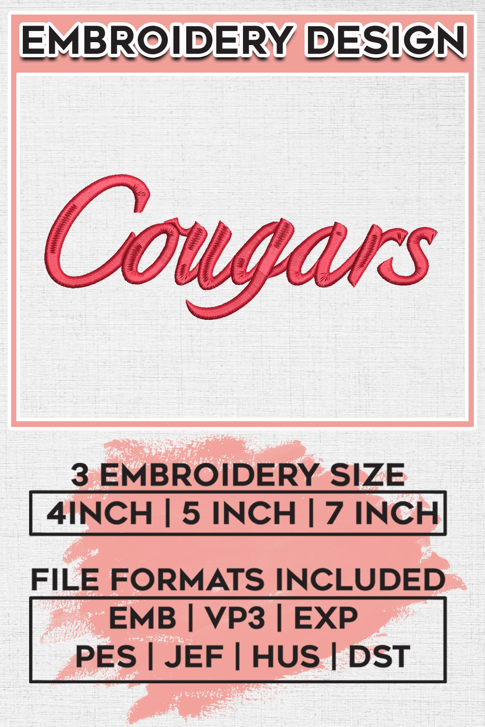 NCAA Cougars College Football Team Writing Logo Embroidery Designs, NCAA Houston Cougars Machine Embroidery Files, NCAA Logo embroidery designs, NCAA Houston Logo, Digital Download