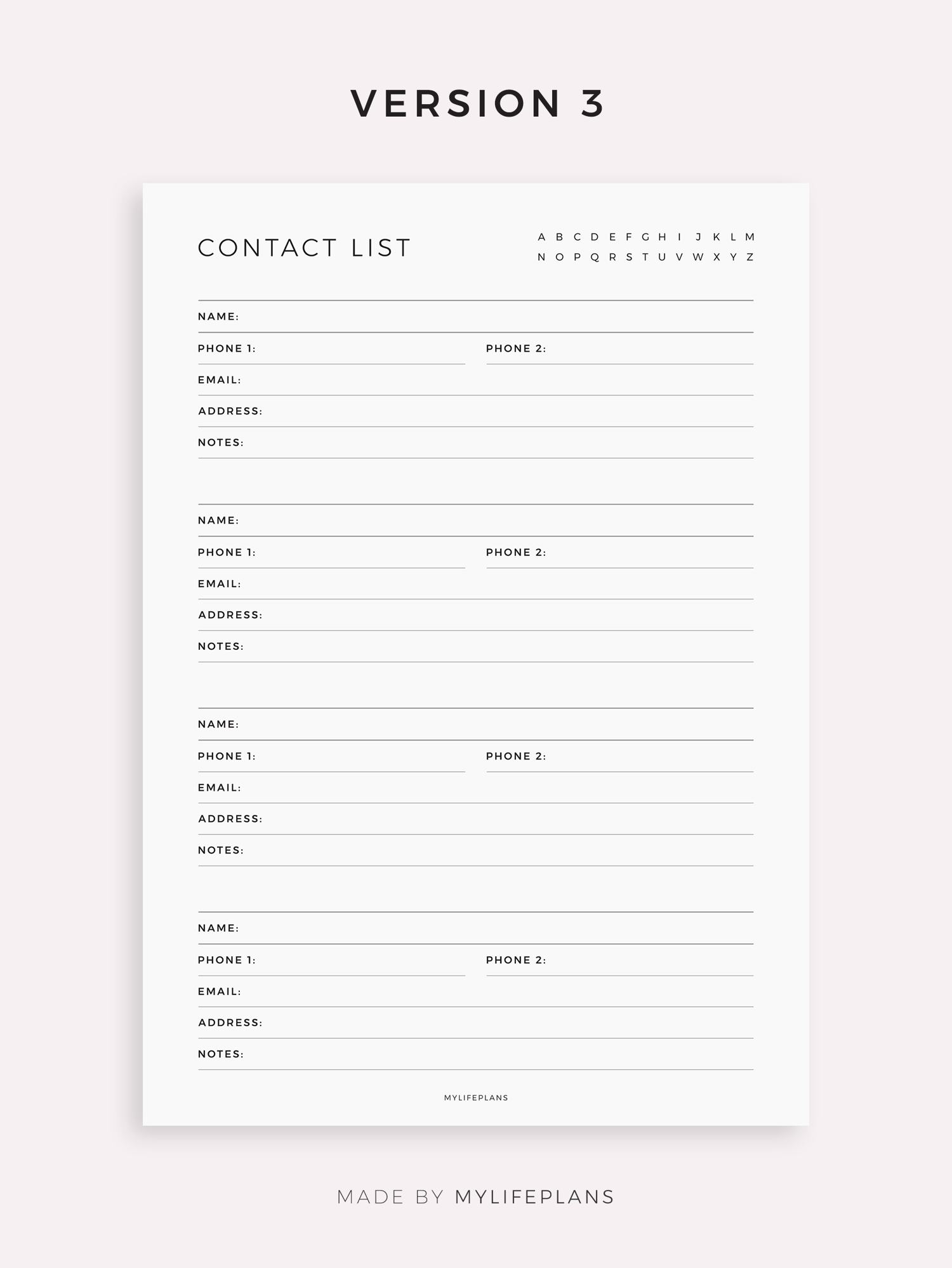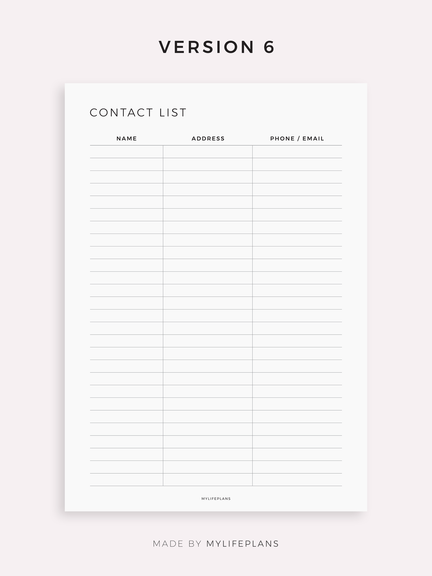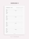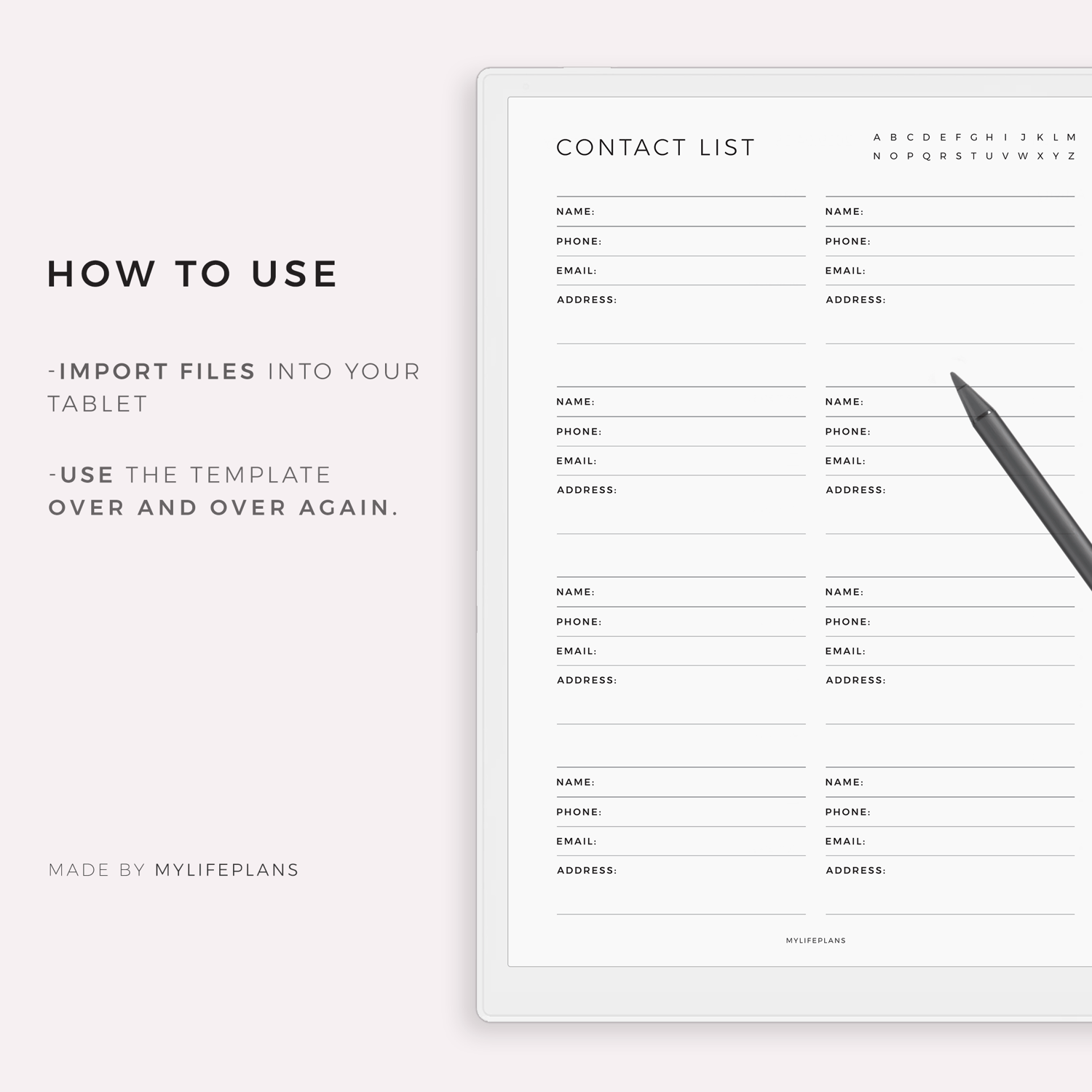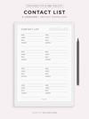 Contacts List Template for Remarkable, Supernote, Kindle Scribe, Boox, Kobo