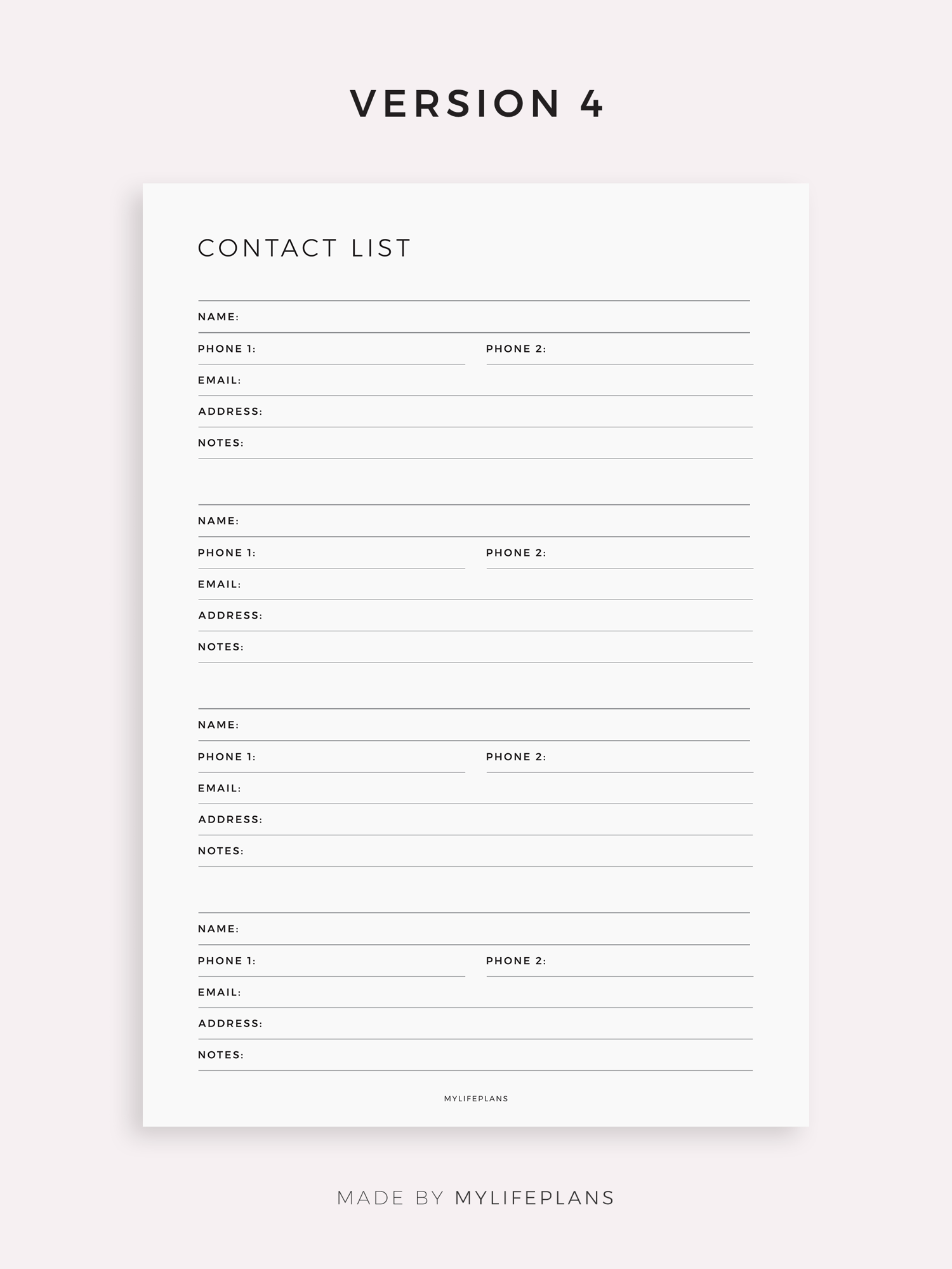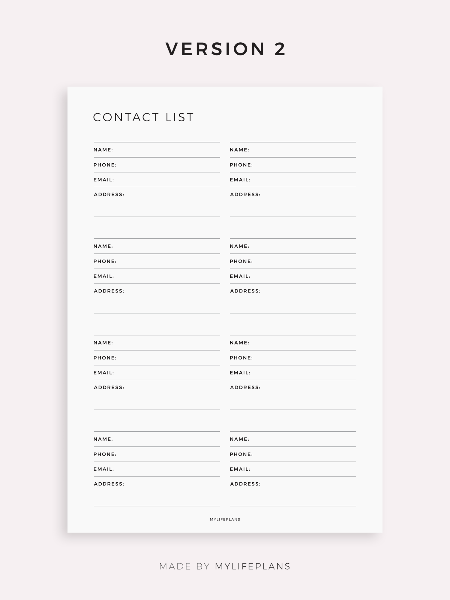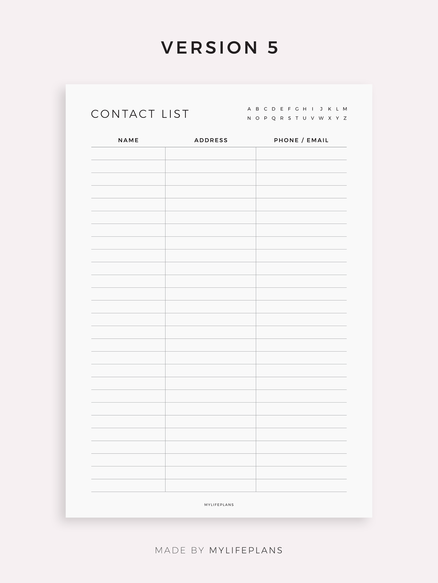 Contacts List Template for Remarkable, Supernote, Kindle Scribe, Boox, Kobo