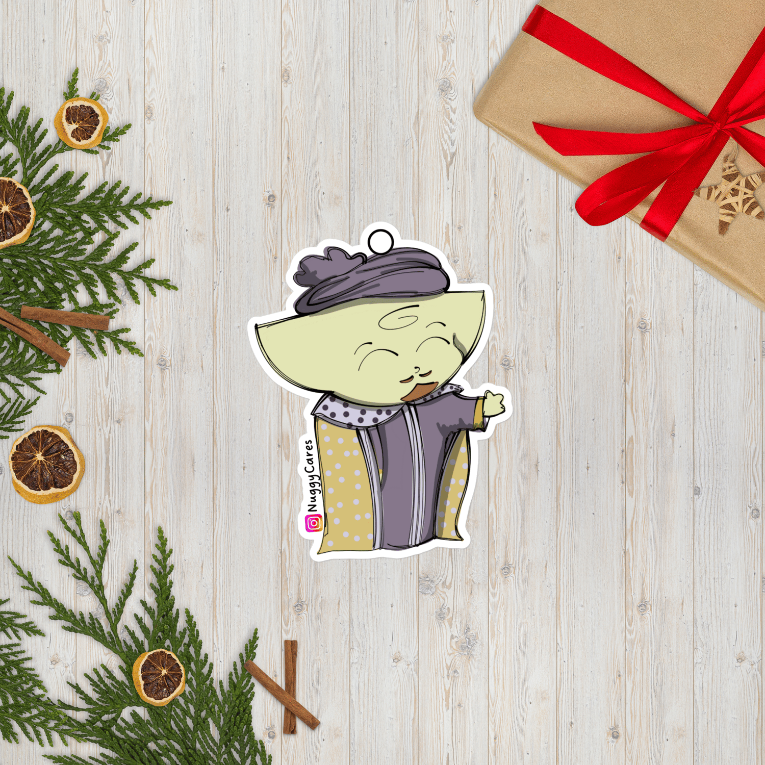 Celebra la Navidad con Nuggy como Gaspar, trayendo encanto y alegría a tu árbol. Este sticker colgante captura el traje festivo de Nuggy y su expresión alegre, perfecto para cualquier decoración navideña.
