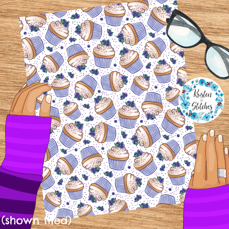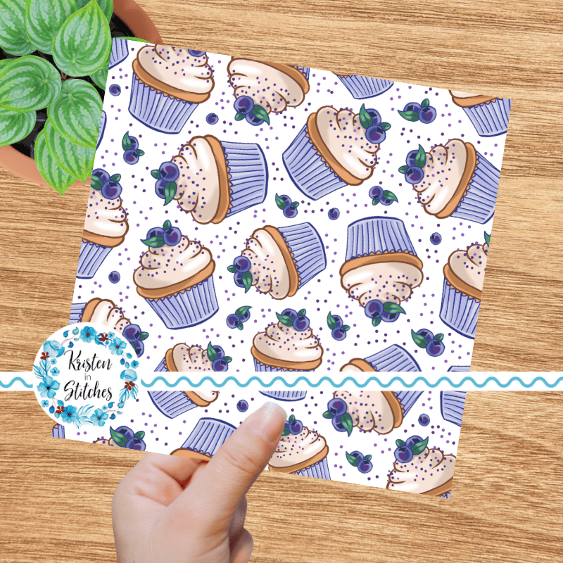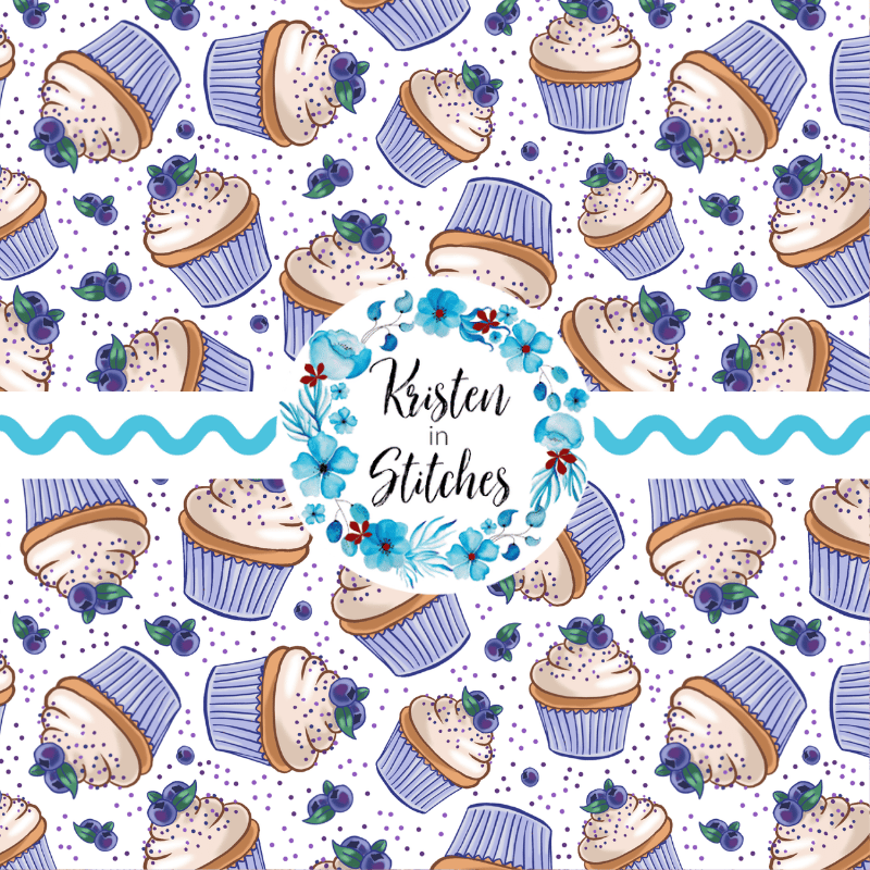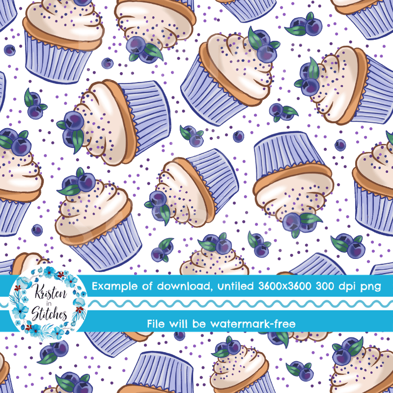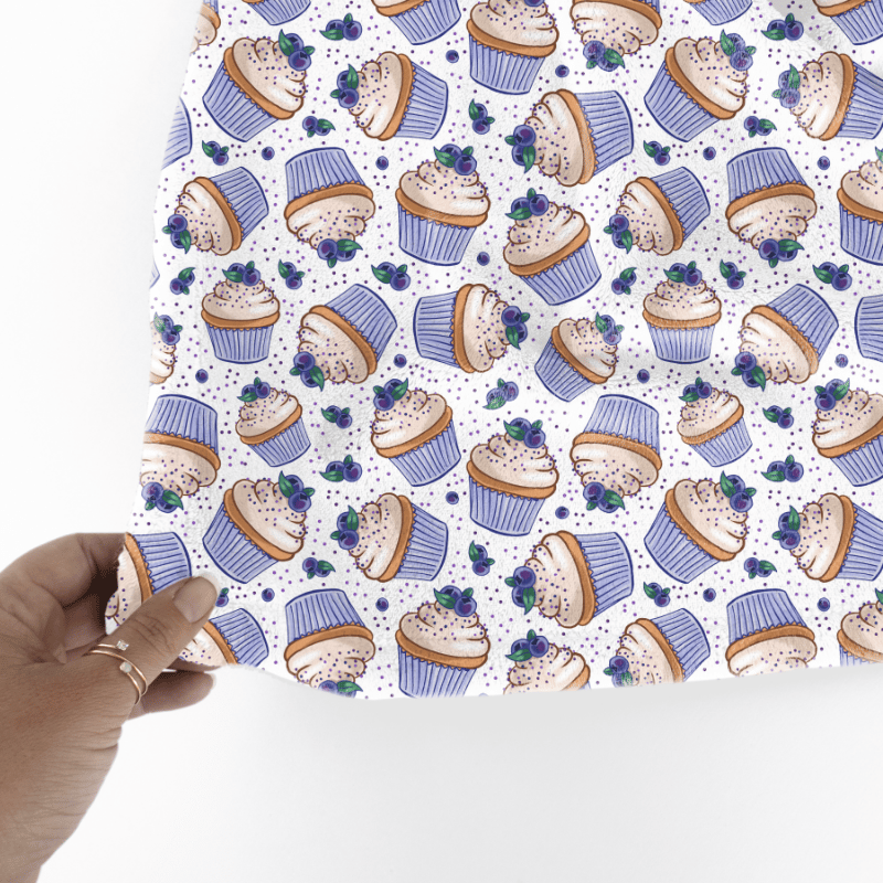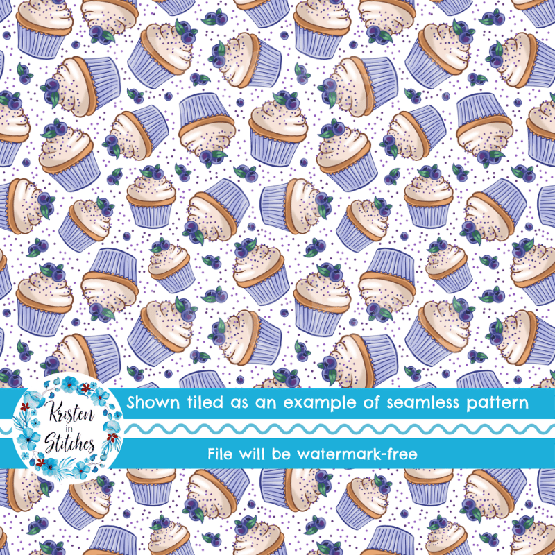 Blueberry Frosted Cupcakes Seamless Pattern, Blue Fruit Treats