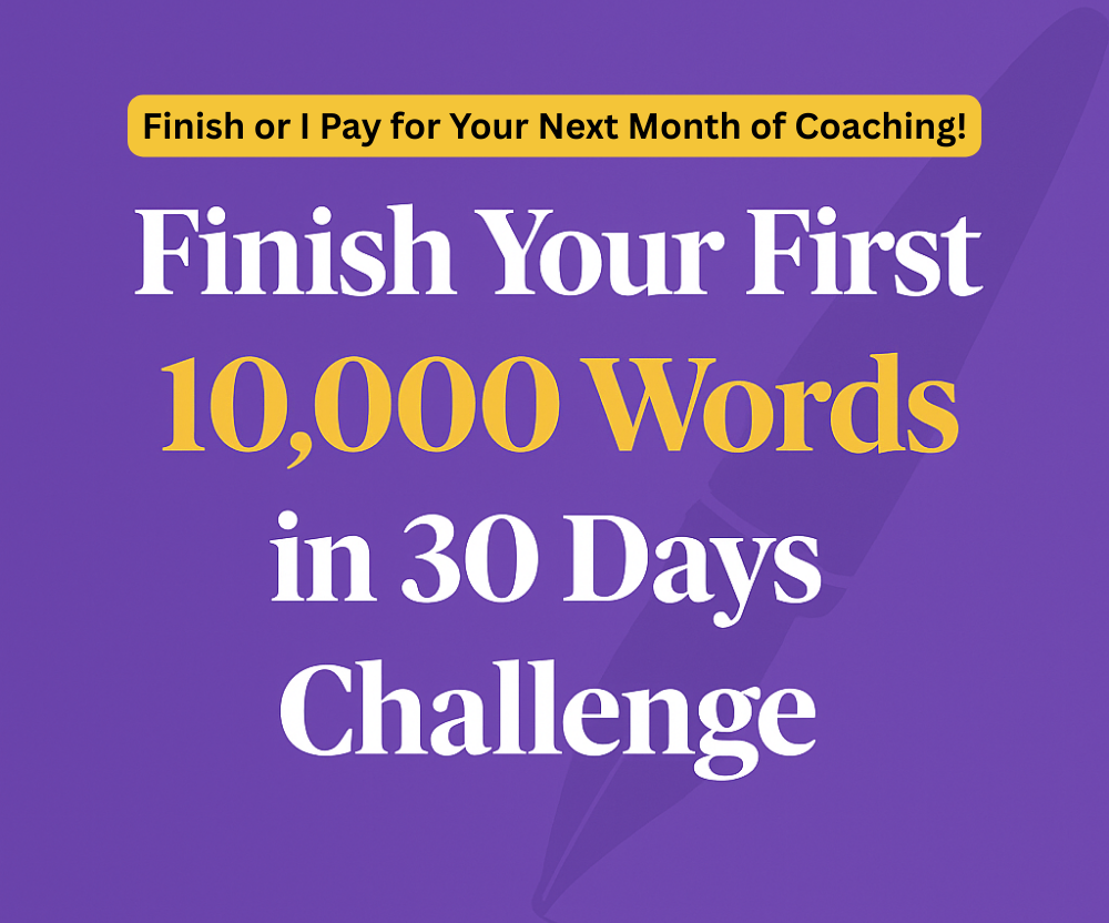 ✅ Finish Guarantee: If you don’t finish your 10K words in 30 days, I’ll cover your next month of coaching at no cost to you