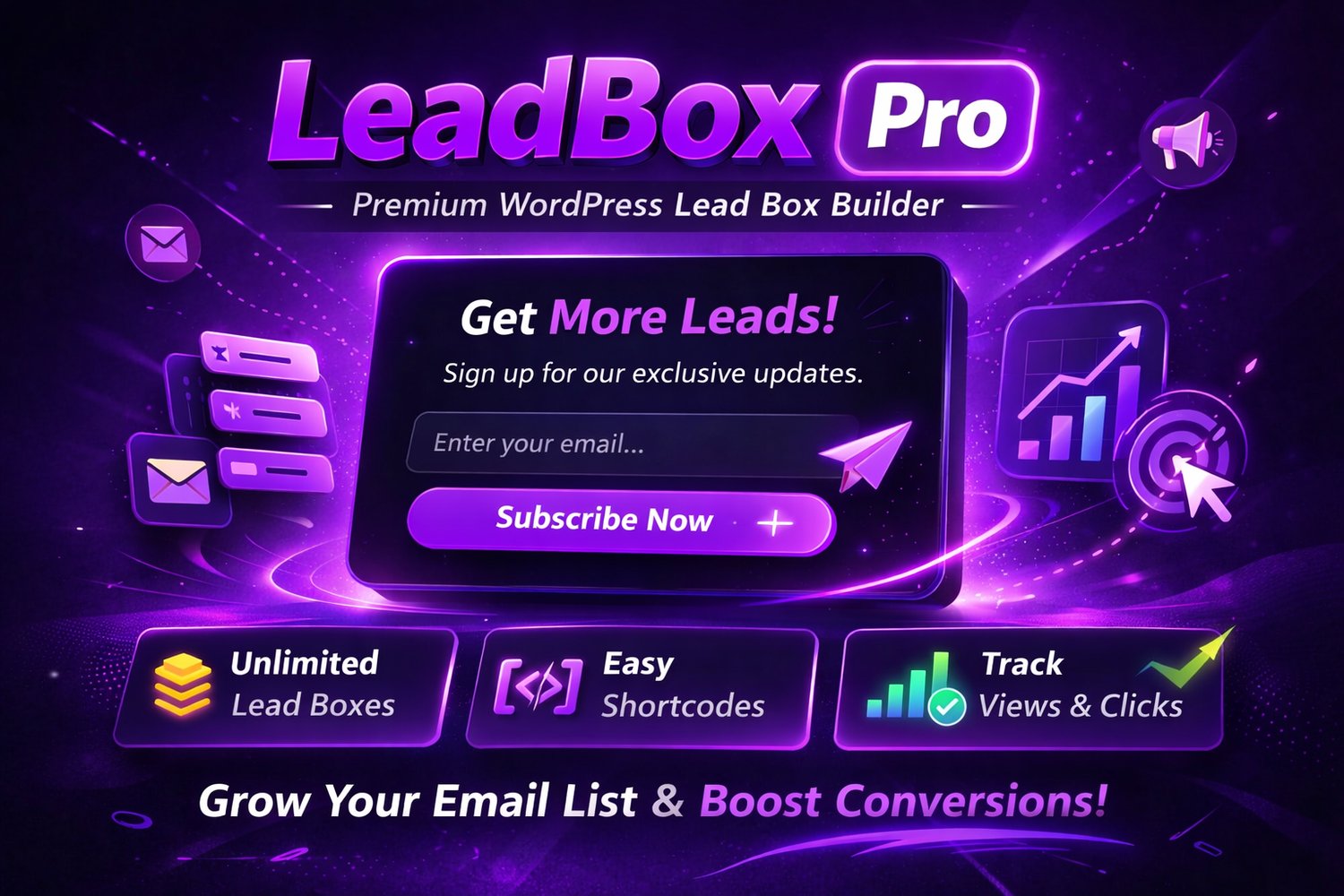 LeadBox Pro is designed to help you grow your email list, increase conversions, and capture leads effectively. Perfect for bloggers, online courses, e-commerce stores, and marketers, this plugin provides a professional, easy-to-use solution without the need for complex coding. π‘
